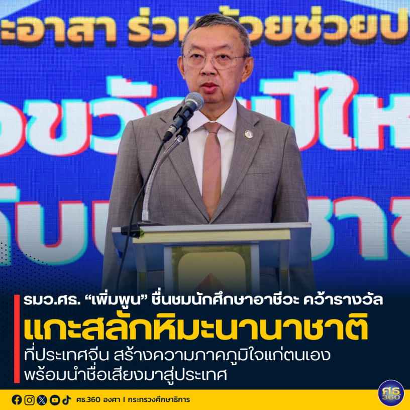 8 มกราคม 2567 / พลตำรวจเอก เพิ่มพูน ชิดชอบ รัฐมนตรีว่าการกระทรวงศึกษาธิการ ชื่นชมนักศึกษาจากสำนักงานคณะกรรมการการอาชีวศึกษา (สอศ.) ที่คว้ารางวัลจาก การแข่งขันแกะสลักน้ำแข็งจากหิมะระดับนานาชาติ ครั้งที่ 16 (16th International Collegiate Snow Sculpture Contest, 2024) ในระหว่างวันที่ 4 – 7 มกราคม 2567 ณ เมือง Harbin สาธารณรัฐประชาชนจีน ซึ่งนำชื่อเสียงและความภาคภูมิใจมาสู่กระทรวงศึกษาธิการและประเทศไทย