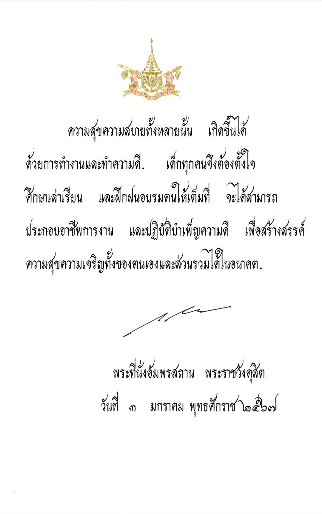 พระบาทสมเด็จพระเจ้าอยู่หัว พระราชทานพระบรมราโชวาท เนื่องในวันเด็กแห่งชาติ ประจำปี 2567