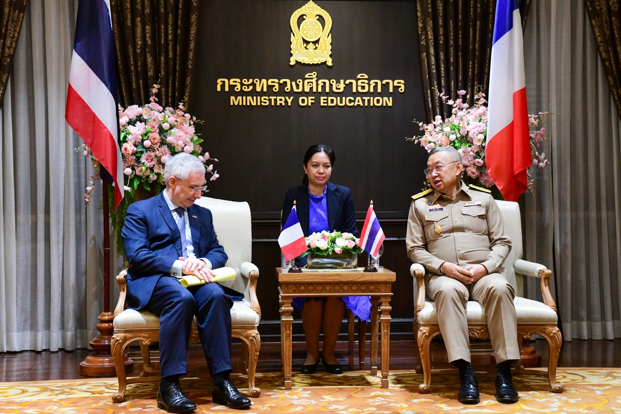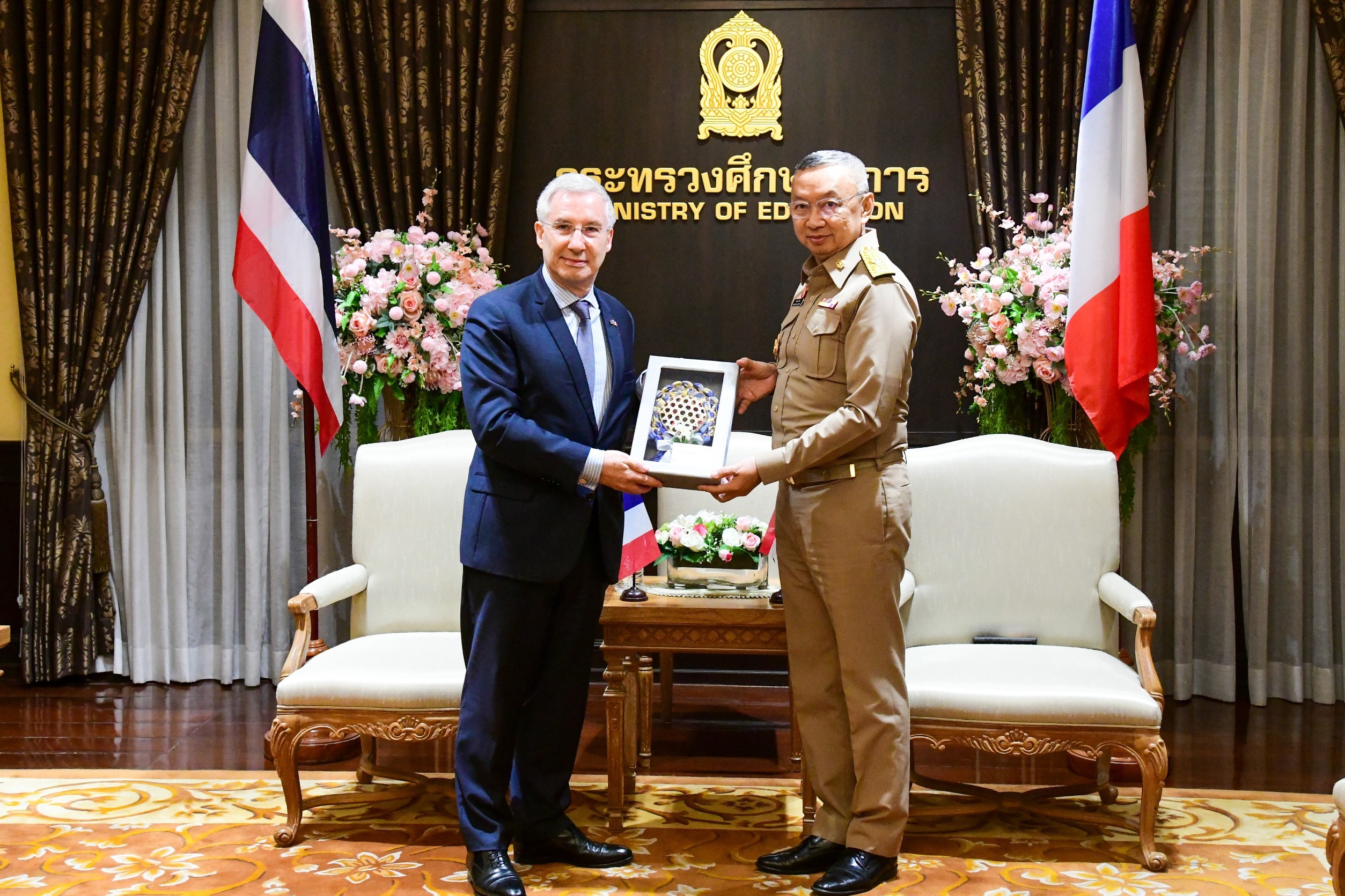 ขอบคุณสถานเอกอัครราชทูตฝรั่งเศสที่ให้การสนับสนุนและร่วมมือด้านการศึกษาด้วยดีมาตลอด ด้วยประเทศไทยและฝรั่งเศสมีความสัมพันธ์ที่ยาวนาน มีบุคคลชั้นนำของประเทศไทยจำนวนมากที่จบการศึกษาจากประเทศฝรั่งเศส และยังมีโครงการครูผู้ช่วยสอนภาษาฝรั่งเศส (French Assistants Teaching Project – FTA) ซึ่งจัดขึ้นทุกปี ทั้งนี้ ขอชื่นชมความมีชื่อเสียงในหลายด้านของประเทศฝรั่งเศส ทั้งด้านอาหารและแฟชั่น อีกทั้ง รัฐบาลไทยอยู่ในช่วงส่งเสริมกิจกรรมด้าน soft power จึงเป็นโอกาสดีที่ได้แลกเปลี่ยนความคิดเห็นและแนวทางความร่วมมือด้านการศึกษาร่วมกัน