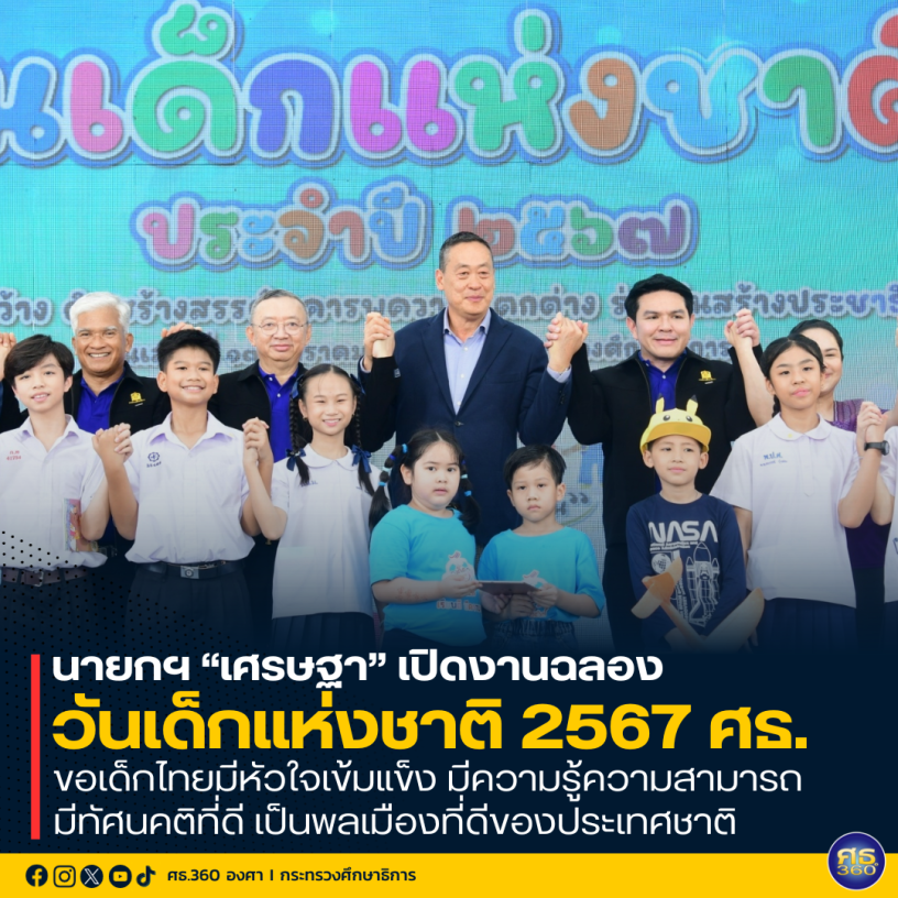 กระทรวงศึกษาธิการ จัดงานวันฉลองเด็กแห่งชาติ ประจำปี 2567 อย่างยิ่งใหญ่ ในวันเสาร์ที่ 13 มกราคม 2567 ณ บริเวณกระทรวงศึกษาธิการ กรุงเทพมหานคร โดยมีนายเศรษฐา ทวีสิน นายกรัฐมนตรีและรัฐมนตรีว่าการกระทรวงการคลัง เป็นประธานในพิธีเปิดงาน ร่วมด้วย พล.ต.อ.เพิ่มพูน ชิดชอบ รัฐมนตรีว่าการกระทรวงศึกษาธิการ นายสุรศักดิ์ พันธ์เจริญวรกุล รัฐมนตรีช่วยว่าการกระทรวงศึกษาธิการ ผู้บริหารองค์กรหลักกระทรวงศึกษาธิการ คณะกรรมการการจัดงานวันเด็กแห่งชาติ และน้อง ๆ เยาวชนจากหลากหลายโรงเรียน ภายใต้แนวคิด “เรียนดี มีความสุข” จับมือไว้แล้วไปด้วยกัน มอบความสุข..ปลุกความคิด..สร้างสรรค์ กระตุ้นให้เด็กและเยาวชนได้ตระหนักถึงบทบาทอันสำคัญของตนเอง ตลอดจนปลูกฝังให้มีส่วนร่วมในสังคม มีความสามัคคี เป็นกำลังสำคัญของชาติ