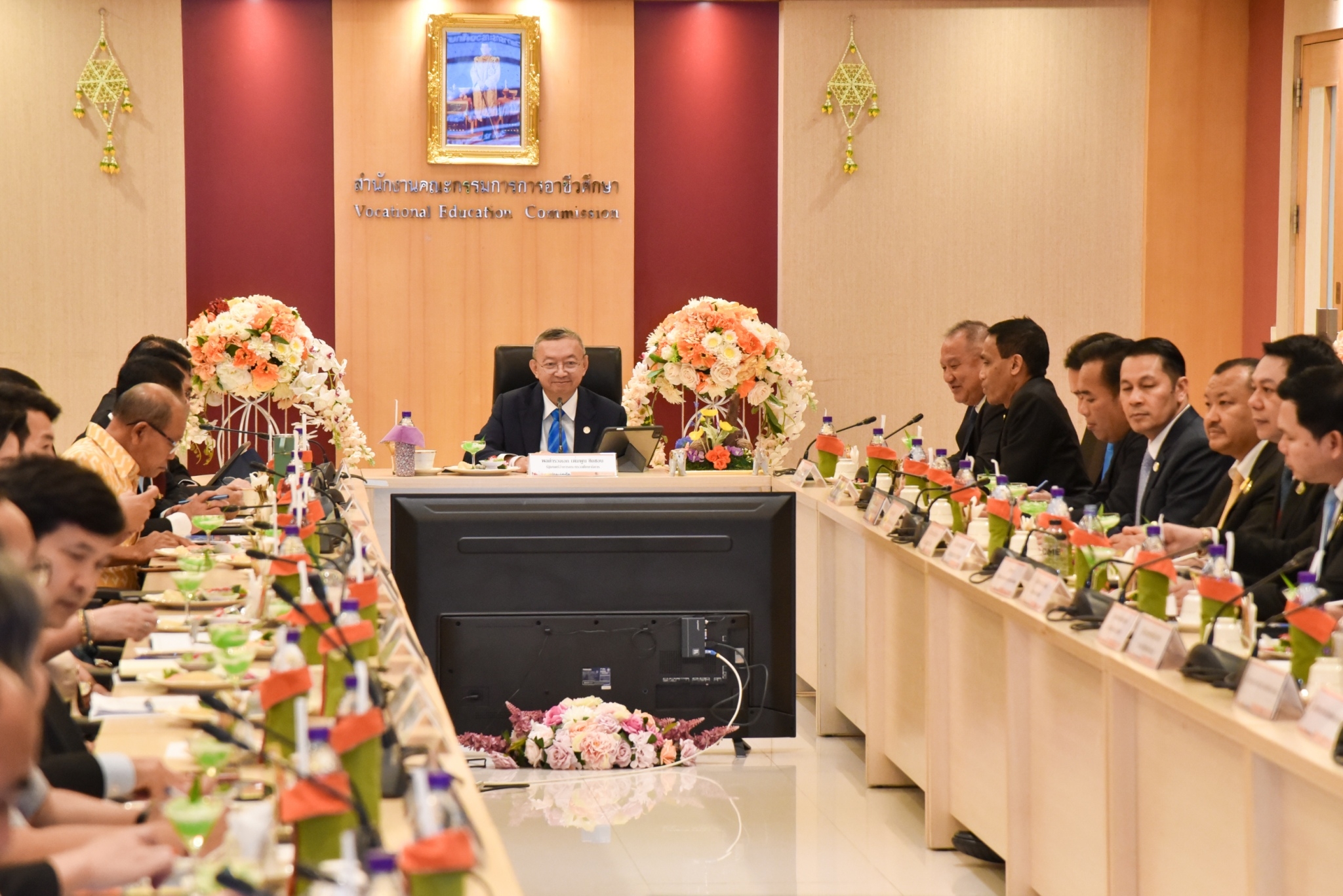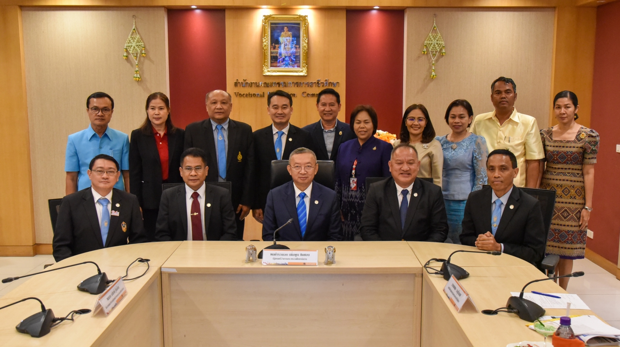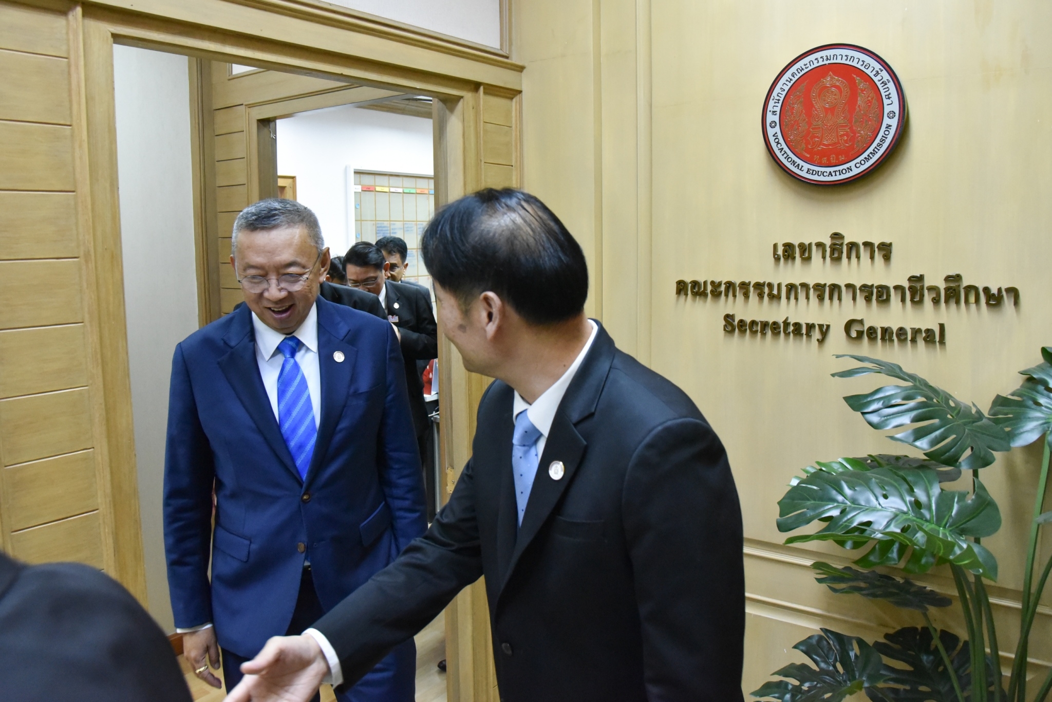12 มกราคม 2567 – พลตำรวจเอก เพิ่มพูน ชิดชอบ รัฐมนตรีว่าการกระทรวงศึกษาธิการ พร้อมด้วย พลเอก อภิชาติ อุ่นอ่อน ประธานคณะทำงานรัฐมนตรีว่าการกระทรวงศึกษาธิการ เข้าตรวจเยี่ยม และมอบนโยบายการดำเนินงานให้กับสำนักงานคณะกรรมการการอาชีวะศึกษา (สอศ.) พร้อมมอบนโยบายการทำงาน “เรียนดี มีความสุข” แนวทางการทำงาน “ถูกต้อง รวดเร็ว ประโยชน์ ประหยัด” และเดินสำรวจบรรยากาศในสถานที่ทำงาน และให้กำลังใจข้าราชการและเจ้าหน้าที่ โดยมี นายยศพล เวณุโกเศศ เลขาธิการ กอศ. เรืออากาศโท สมพร ปานดำ นายวิทวัต ปัญจมะวัต นายประพัทธ์ รัตนอรุณ รองเลขาธิการ กอศ. นายสง่า แต่เชื้อสาย ผู้ช่วยเลขาธิการ กอศ. ผู้อำนวยการสำนัก ข้าราชการและบุคลากร ให้การต้อนรับ ณ ห้องประชุม 5 สำนักงานคณะกรรมการการอาชีวศึกษา