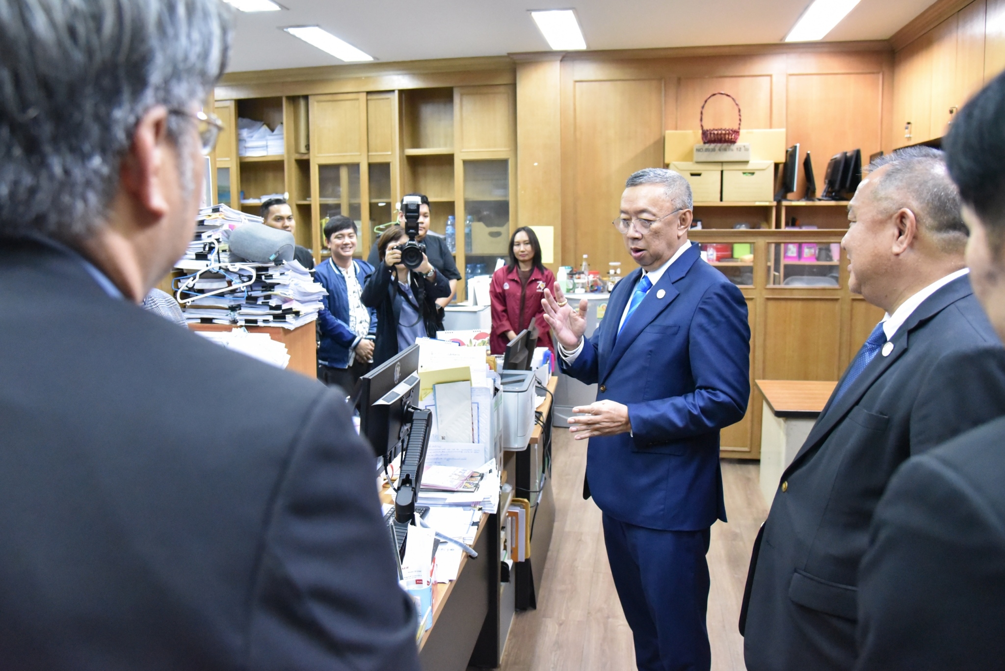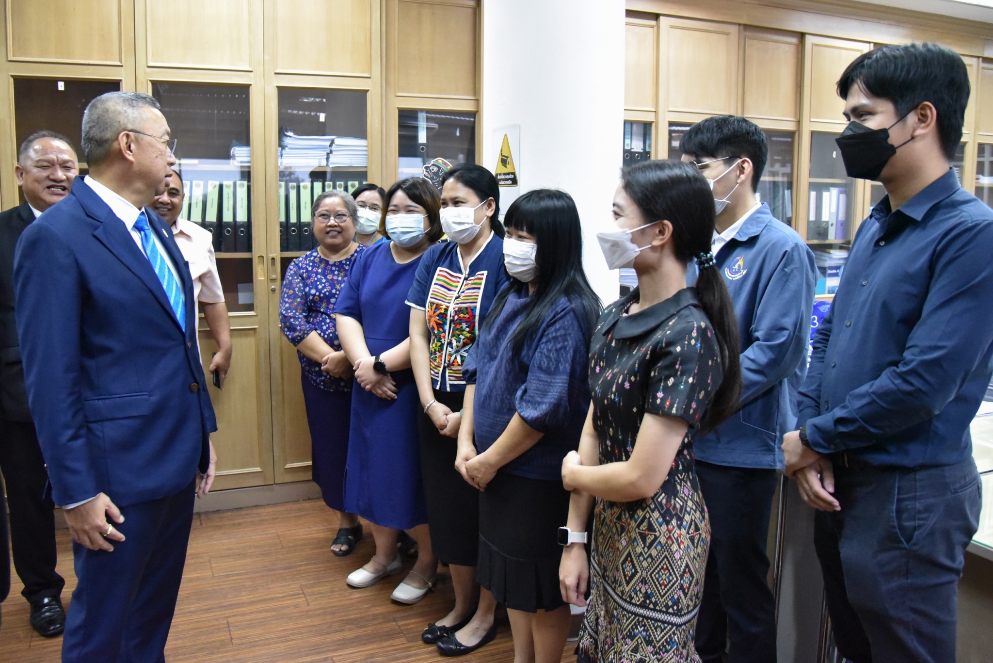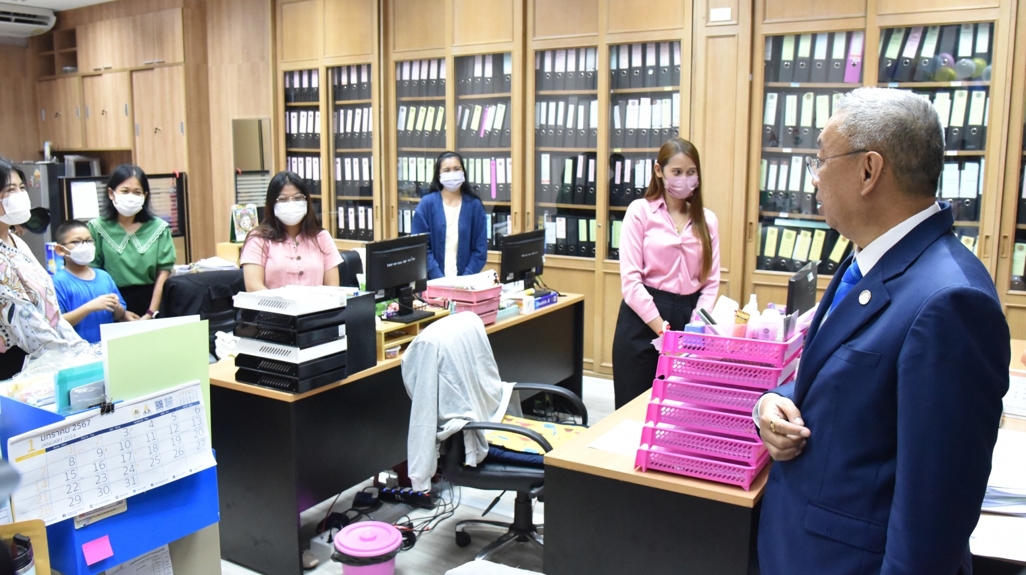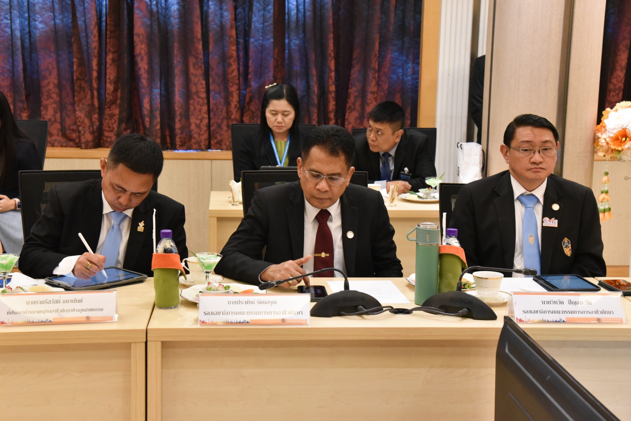 12 มกราคม 2567 – พลตำรวจเอก เพิ่มพูน ชิดชอบ รัฐมนตรีว่าการกระทรวงศึกษาธิการ พร้อมด้วย พลเอก อภิชาติ อุ่นอ่อน ประธานคณะทำงานรัฐมนตรีว่าการกระทรวงศึกษาธิการ เข้าตรวจเยี่ยม และมอบนโยบายการดำเนินงานให้กับสำนักงานคณะกรรมการการอาชีวะศึกษา (สอศ.) พร้อมมอบนโยบายการทำงาน “เรียนดี มีความสุข” แนวทางการทำงาน “ถูกต้อง รวดเร็ว ประโยชน์ ประหยัด” และเดินสำรวจบรรยากาศในสถานที่ทำงาน และให้กำลังใจข้าราชการและเจ้าหน้าที่ โดยมี นายยศพล เวณุโกเศศ เลขาธิการ กอศ. เรืออากาศโท สมพร ปานดำ นายวิทวัต ปัญจมะวัต นายประพัทธ์ รัตนอรุณ รองเลขาธิการ กอศ. นายสง่า แต่เชื้อสาย ผู้ช่วยเลขาธิการ กอศ. ผู้อำนวยการสำนัก ข้าราชการและบุคลากร ให้การต้อนรับ ณ ห้องประชุม 5 สำนักงานคณะกรรมการการอาชีวศึกษา