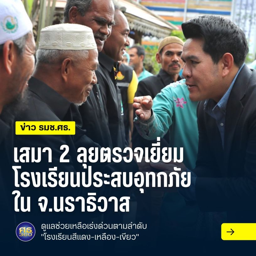 รมช.ศธ. “สุรศักดิ์ พันธ์เจริญวรกุล” ลุยตรวจเยี่ยมให้กำลังใจโรงเรียนประสบอุทกภัยใน จ.นราธิวาส พร้อมรับฟังข้อมูลความเสียหาย ก่อนของบกลางฯ ดูแลช่วยเหลือเร่งด่วนตามลำดับ “โรงเรียนสีแดง-เหลือง-เขียว”