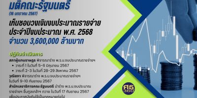 ครม.เห็นชอบวงเงินงบประมาณรายจ่ายประจำปีงบประมาณ พ.ศ. 2568 จำนวน 3,600,000 ล้านบาท