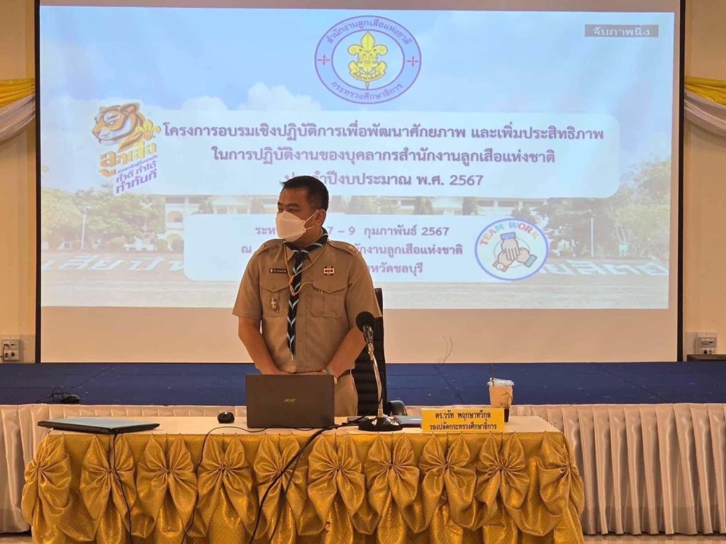 สำหรับโครงการอบรมเชิงปฏิบัติการเพื่อพัฒนาศักยภาพ และเพิ่มประสิทธิภาพในการปฏิบัติงานของบุคลากรสำนักงานลูกเสือแห่งชาติ ประจำปีงบประมาณ พ.ศ. 2567 ดำเนินการระหว่างวันที่ 7 – 9 กุมภาพันธ์ 2567 ณ สำนักงานลูกเสือแห่งชาติ อำเภอศรีราชา จังหวัดชลบุรี มีวัตถุประสงค์ 1) เพื่อพัฒนาความรู้ ความสามารถและทักษะในด้านต่าง ๆ มาประยุกต์ใช้ในการปฏิบัติงานให้มีประสิทธิภาพมากยิ่งขึ้น 2) เพื่อแลกเปลี่ยนความรู้ ความคิดเห็น ประสบการณ์การทำงานเป็นทีมร่วมกัน และ 3) เพื่อสร้างความเข้าใจในการปฏิบัติงานให้เป็นไปในทิศทางเดียวกัน โดยกลุ่มเป้าหมายในการเข้าอบรมเชิงปฏิบัติการครั้งนี้ ได้แก่ ผู้บริหาร หัวหน้าค่ายลูกเสือและพนักงานเจ้าที่ของสำนักงานลูกเสือแห่งชาติ