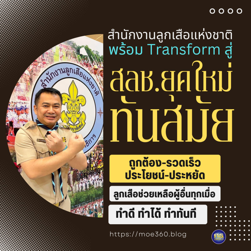 การบริหารจัดการองค์กร จําเป็นจะต้องมีการพัฒนาบุคลากรให้มีความรู้ความสามารถเพิ่มทักษะด้านต่าง ๆ ให้บุคลากรให้มีความรู้ทันสมัย Re – Skill นำเทคโนโลยีมาใช้ในการปฏิบัติงาน คํานึงประโยชน์ขององค์กรเพื่อองค์กรจะได้เข้มแข็งขับเคลื่อนงานของชาติบ้านเมืองและให้ดํารงตน ตามแนวทางนโยบายของรัฐมนตรีว่าการกระทรวงศึกษาธิการ (พลตํารวจเอก เพิ่มพูน ชิดชอบ) ลูกเสือช่วยเหลือ ผู้อื่นทุกเมื่อ “ทําดี ทําได้ ทําทันที”