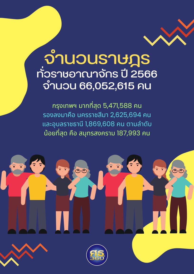 จังหวัดที่มีจำนวนราษฎรมากที่สุด 3 อันดับแรก คือ กรุงเทพฯ มากที่สุด 5,471,588 คน รองลงมาคือ นครราชสีมา 2,625,694 คน และอุบลราชธานี 1,869,608 คน ตามลำดับ