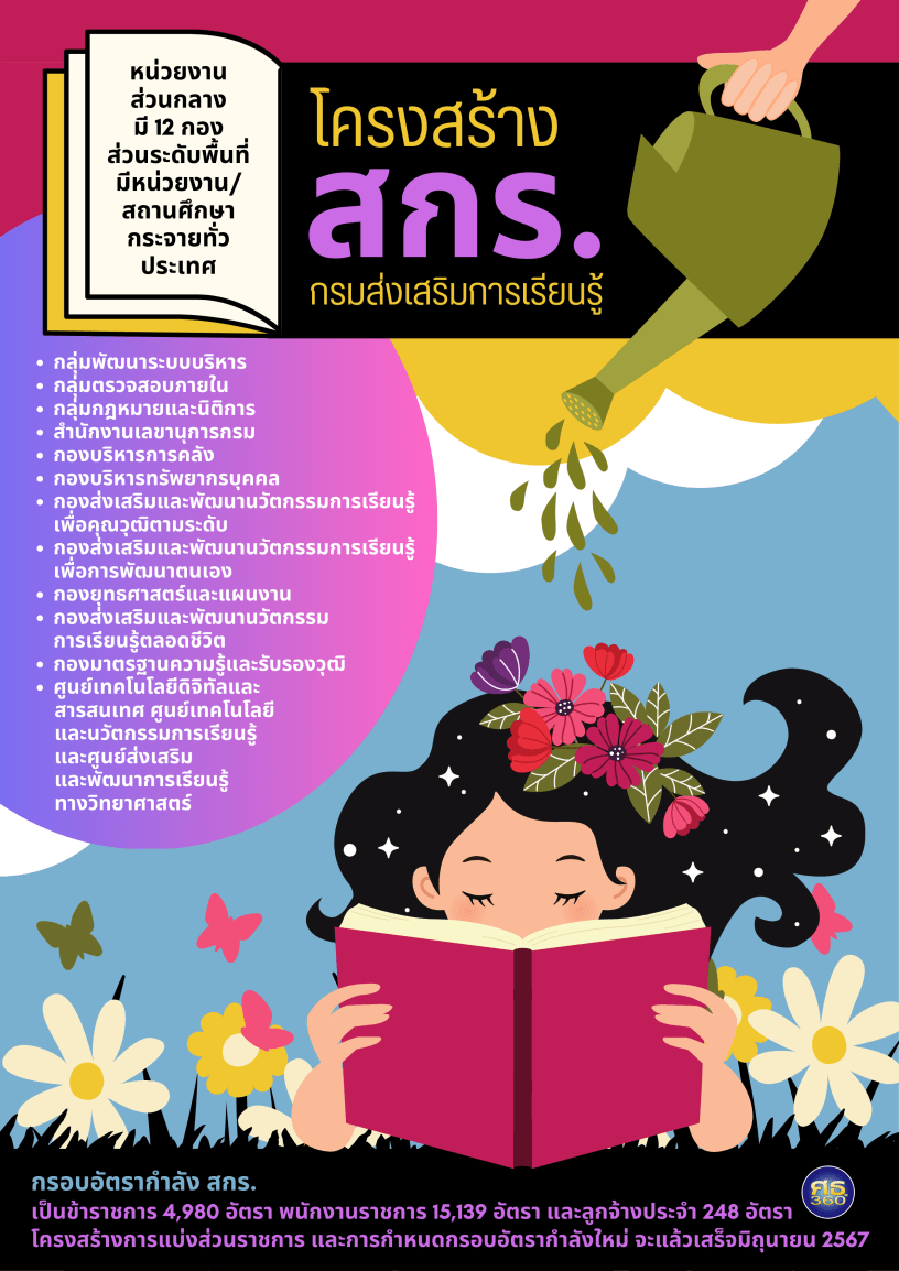 นายธนากร ดอนเหนือ ผู้ตรวจราชการกระทรวงศึกษาธิการ รักษาราชการแทนอธิบดีกรมส่งเสริมการเรียนรู้ (สกร.) เปิดเผยว่า ขณะนี้ได้ข้อยุติแล้วว่าหน่วยงานภายใน สกร. (Department of Learning Encouragement : DOLE) ในส่วนกลาง มี 12 หน่วยงาน ประกอบด้วย