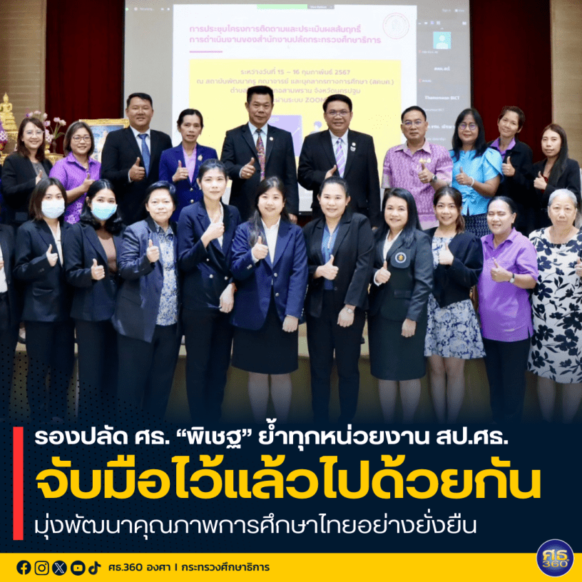 นอกจากปฏิบัติภารกิจด้านการติดตาม ประเมิน และรายงานผลการดำเนินงานของ สป. แล้ว ขอฝากให้ประสานการทำงานกับหน่วยงานต่าง โดยเฉพาะ ศธจ. ต้องบูรณาการการทำงานร่วมกับจังหวัด และส่วนราชการต่าง ๆ เพื่อประสานความร่วมมือร่วมใจในการปฏิบัติงานให้ครอบคลุมในทุกพื้นที่ การนำระบบการประชุมอิเล็กทรอนิกส์ หรือ E-Meeting มาใช้เพื่ออำนวยความสะดวก ก็เป็นอีกสิ่งหนึ่งที่จะช่วยสนับสนุนการทำงานให้มีประสิทธิภาพมากยิ่งขึ้น