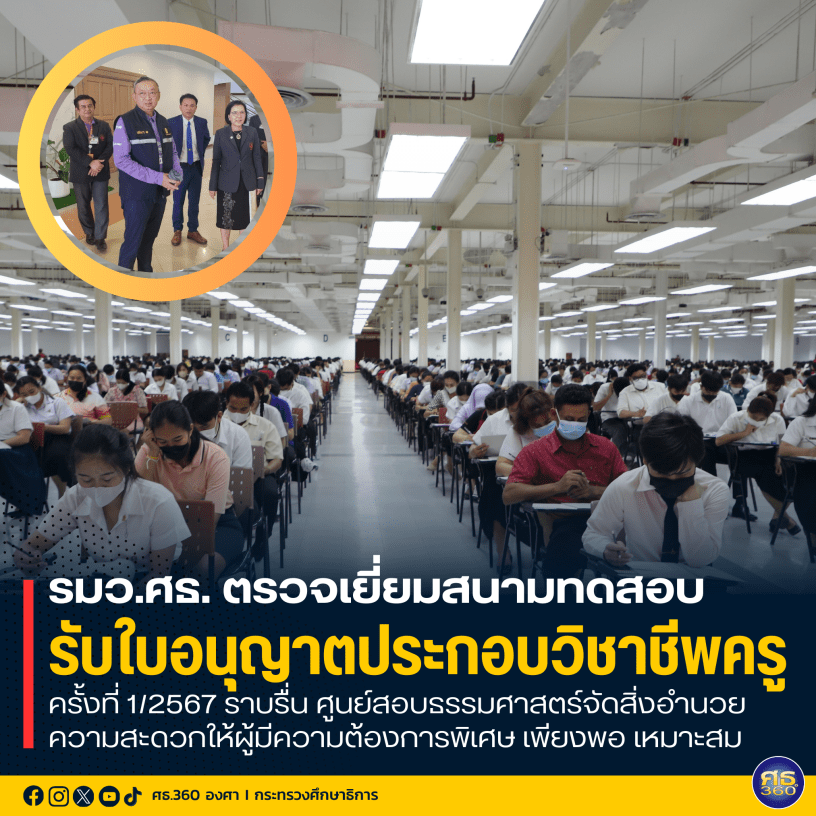 รมว.ศธ. “พลตำรวจเอก เพิ่มพูน ชิดชอบ” ลงพื้นที่ตรวจเยี่ยมสนามทดสอบรับใบอนุญาตประกอบวิชาชีพครู ครั้งที่ 1/2567 ราบรื่น ศูนย์สอบธรรมศาสตร์จัดสิ่งอำนวยความสะดวกให้ผู้มีความต้องการพิเศษ บกพร่องทางร่างกาย-สายตา-การได้ยิน รวมทั้งผู้ตั้งครรภ์ และพระภิกษุสงฆ์ อย่างเพียงพอและเหมาะสม