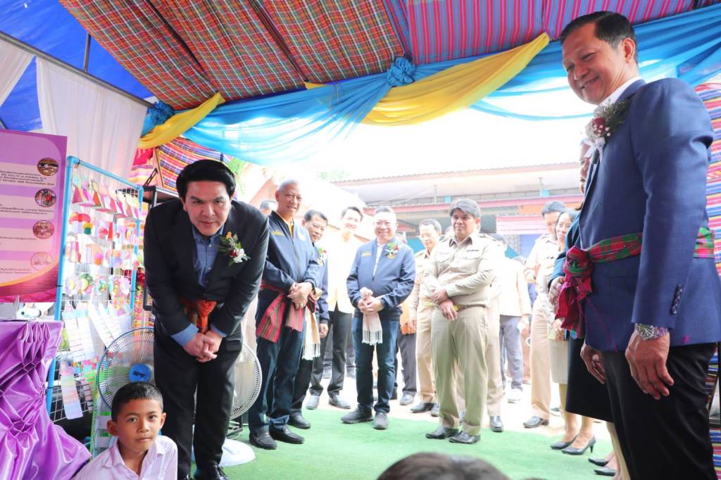 จังหวัดศรีสะเกษ – 8 มีนาคม 2567 / นายสุรศักดิ์ พันธ์เจริญวรกุล รัฐมนตรีช่วยว่าการกระทรวงศึกษาธิการ ลงพื้นที่ติดตามการดำเนินงานโครงการส่งเสริมอาชีพแรงงานนอกระบบเพื่อลดปัญหาการเคลื่อนย้ายแรงงาน พร้อมมอบนโยบายและสอบถามปัญหาที่เกิดจากการพลัดถิ่นและเสนอแนะแนวทางการแก้ไขปัญหาของนักเรียน ผู้ปกครอง พร้อมด้วยนายพัฒนะ พัฒนทวีดล รองเลขาธิการคณะกรรมการการศึกษาขั้นพื้นฐาน นายสมพร ปานดำ รองเลขาธิการคณะกรรมการการอาชีวศึกษา ผู้บริหารการศึกษา ครู บุคลากรทางการศึกษา นักเรียนและผู้ปกครอง เข้าร่วมฯ โดยมีนายพิพัฒน์ รัชกิจประการ รัฐมนตรีว่าการกระทรวงแรงงาน ให้เกียรติมาเป็นประธานในการพบปะครูและนักเรียน ณ โรงเรียนบ้านตูม