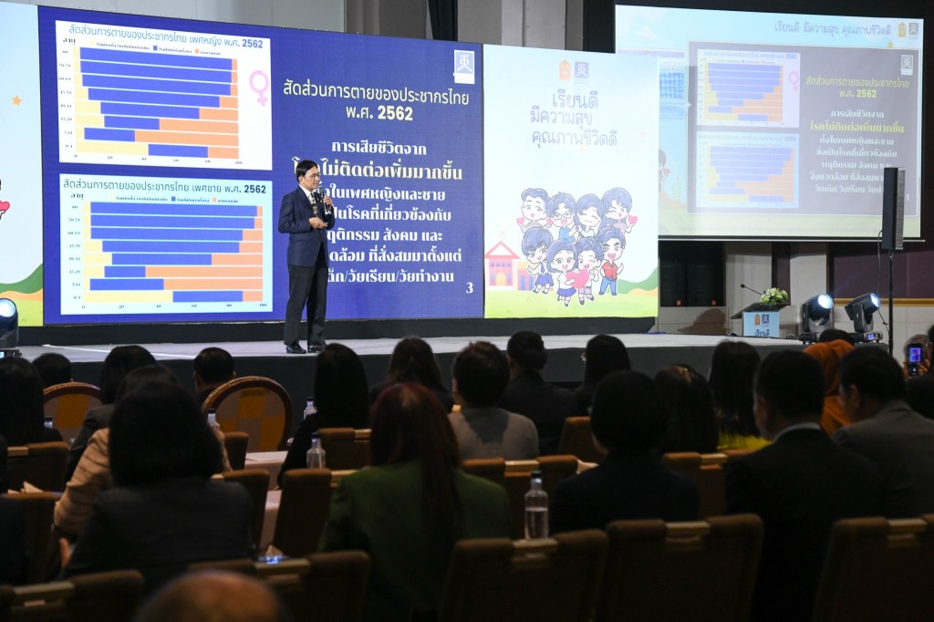นายแพทย์สุเทพ เพชรมาก เลขาธิการคณะกรรมการสุขภาพแห่งชาติ กล่าวว่า สุขภาพของเด็กและเยาวชนซึ่งเป็นกลุ่มที่จะเติบโตขึ้นมาเป็นอนาคตของประเทศนั้น เกี่ยวข้องกับปัจจัยที่หลากหลายมากมาย หน่วยงานด้านสาธารณสุขหรือด้านสุขภาพเพียงอย่างเดียวไม่สามารถดำเนินการจัดการได้ ต้องอาศัยหน่วยงาน หรือภาคีจากทุกภาคส่วนร่วมมือกัน ซึ่งกระทรวงศึกษาธิการนั้นถือเป็นองค์กรที่มีส่วนสำคัญมากในเรื่องนี้ เนื่องจากสถานศึกษามีส่วนสำคัญอย่างยิ่งที่จะช่วยส่งเสริมและเอื้อให้เกิดสุขภาวะทางกาย สุขภาวะทางจิต สุขภาวะทางปัญญา รวมถึงการตระหนักรู้ มีสำนึกรับผิดรับชอบ และสุขภาวะทางสังคม ครบทุกมิติตามพระราชบัญญัติสุขภาพแห่งชาติ พ.ศ. 2550 โรงเรียนและสถานศึกษาในรูปแบบต่างๆ จึงถือเป็นจุดยุทธศาสตร์สำคัญในการสร้างสุขภาพ และสุขภาพเป็นเงื่อนไขสำคัญในการนำไปสู่การพัฒนาทุนมนุษย์ ให้ประเทศไทยยังคงมีขีดความสามารถในการแข่งขันและพัฒนาต่อไปได้ในอนาคต