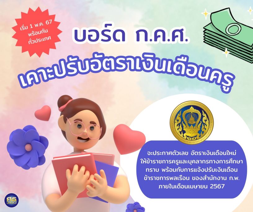 27 มีนาคม 2567 ที่ประชุมคณะกรรมการข้าราชการครูและบุคลากรทางการศึกษา (ก.ค.ศ.) ครั้งที่ 3/2567 ซึ่งมี พล.ต.อ.เพิ่มพูน ชิดชอบ รัฐมนตรีว่าการกระทรวงศึกษาธิการ เป็นประธานการประชุม ได้มีมติเห็นชอบการปรับอัตราเงินเดือนของข้าราชการครูและบุคลากรทางการศึกษา ซึ่งเป็นการดำเนินการตามมติคณะรัฐมนตรีเมื่อวันที่ 28 พฤศจิกายน 2566 ที่ได้เห็นชอบแนวทางการปรับอัตราเงินเดือนของข้าราชการและเจ้าหน้าที่ของรัฐ ตามที่สำนักงานคณะกรรมการข้าราชการพลเรือน (ก.พ.) เสนอ