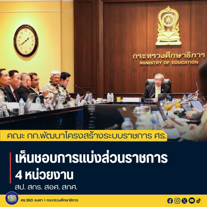 รมว.ศธ. เปิดเผยว่า คณะกรรมการพัฒนาโครงสร้างระบบราชการของกระทรวงศึกษาธิการ มีหน้าที่และอำนาจพิจารณาปรับปรุงการจัดและพัฒนาส่วนราชการและวิธีปฏิบัติงาน ตลอดจนระบบบุคคลให้ทันสมัยและรองรับกับยุทธศาสตร์ชาติ นโยบายและภารกิจที่มีความสำคัญเร่งด่วนของรัฐบาล รวมทั้งบริบทการเปลี่ยนแปลงของโลกและแนวโน้มที่สำคัญในอนาคต พิจารณากำหนดหน้าที่และอำนาจ รวมถึงขอบเขตความรับผิดชอบของส่วนราชการ และองค์กรรูปแบบอื่นที่มิใช่ส่วนราชการภายในสังกัด