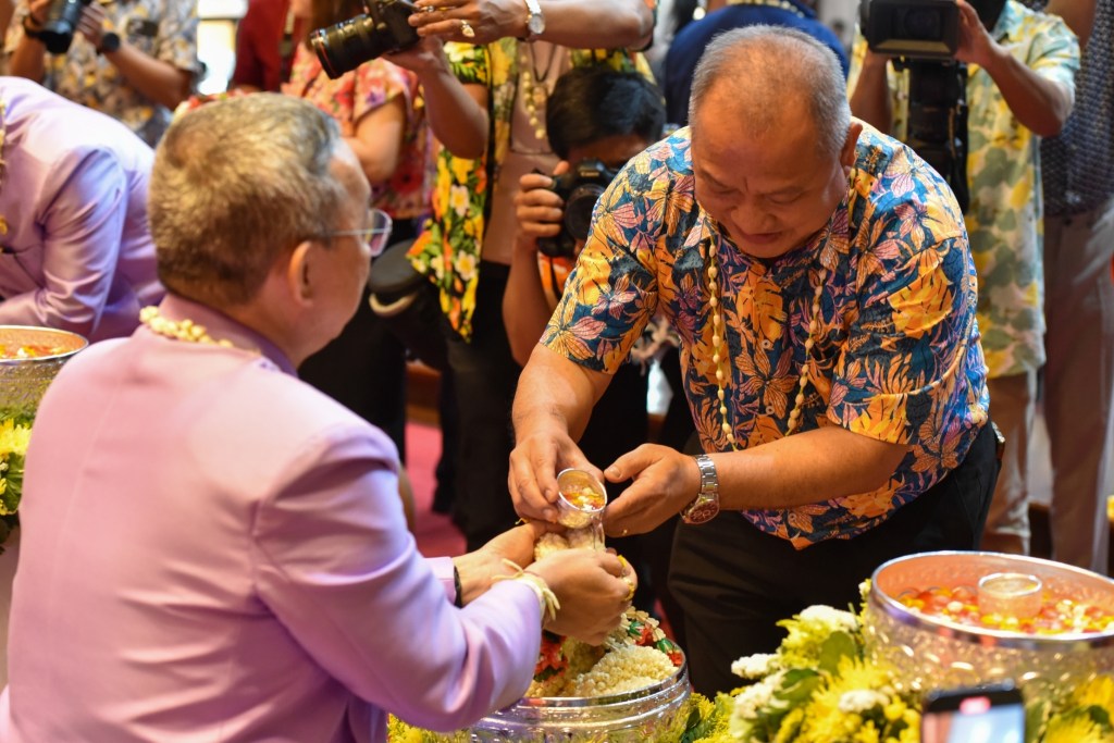 พล.ต.อ.เพิ่มพูน ชิดชอบ รมว.ศธ. กล่าวชื่นชมชาวกระทรวงศึกษาธิการ ที่ยังคงรักษาและสืบทอดประเพณีอันดีงามเกี่ยวกับวันสงกรานต์ ซึ่งถือเป็นวันขึ้นปีใหม่ของไทยที่ยึดถือปฏิบัติสืบเนื่องกันมาแต่โบราณ มีการจัดกิจกรรมที่สะท้อนความเป็นไทยมาอย่างต่อเนื่อง อาทิ การรดน้ำขอพรจากผู้ใหญ่เพื่อความเป็นสิริมงคลแก่ชีวิต ซึ่งเป็นการแสดงออกถึงความกตัญญูกตเวที และเป็นแบบอย่างที่ดีแก่คนรุ่นหลัง