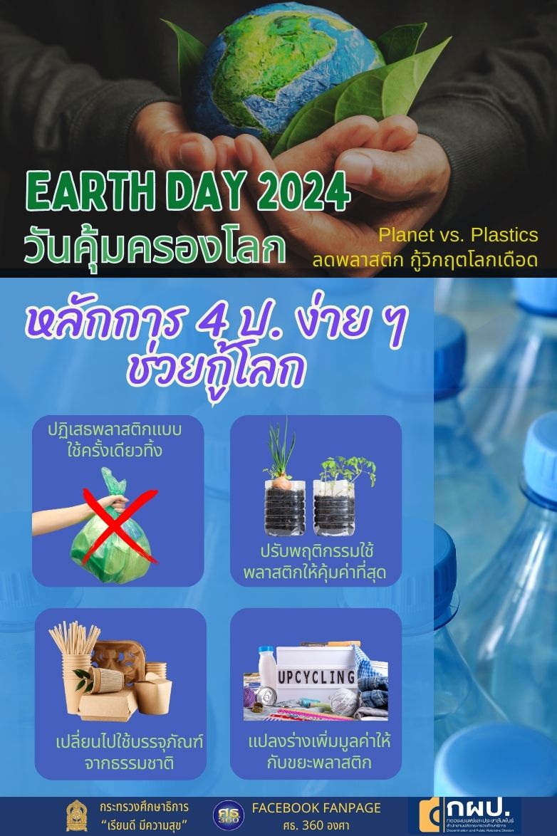 สำหรับปี 2567 มีแนวคิด “Planet vs. Plastics : ลดพลาสติก กู้วิกฤตโลกเดือด” กระทรวงศึกษาธิการ จึงอยากเชิญชวนทุกคนมาลดการใช้พลาสติกแบบใช้ครั้งเดียวทิ้ง เพื่อช่วยกันดูแลโลกใบนี้ ซึ่งการลดการใช้พลาสติกแบบใช้ครั้งเดียวทิ้งไม่ใช่เพียงแค่การปฏิเสธการใช้พลาสติกเท่านั้น แต่เป็นการเริ่มต้นพฤติกรรมสำคัญที่จะช่วยลดการปล่อยก๊าซเรือนกระจกได้ด้วย
