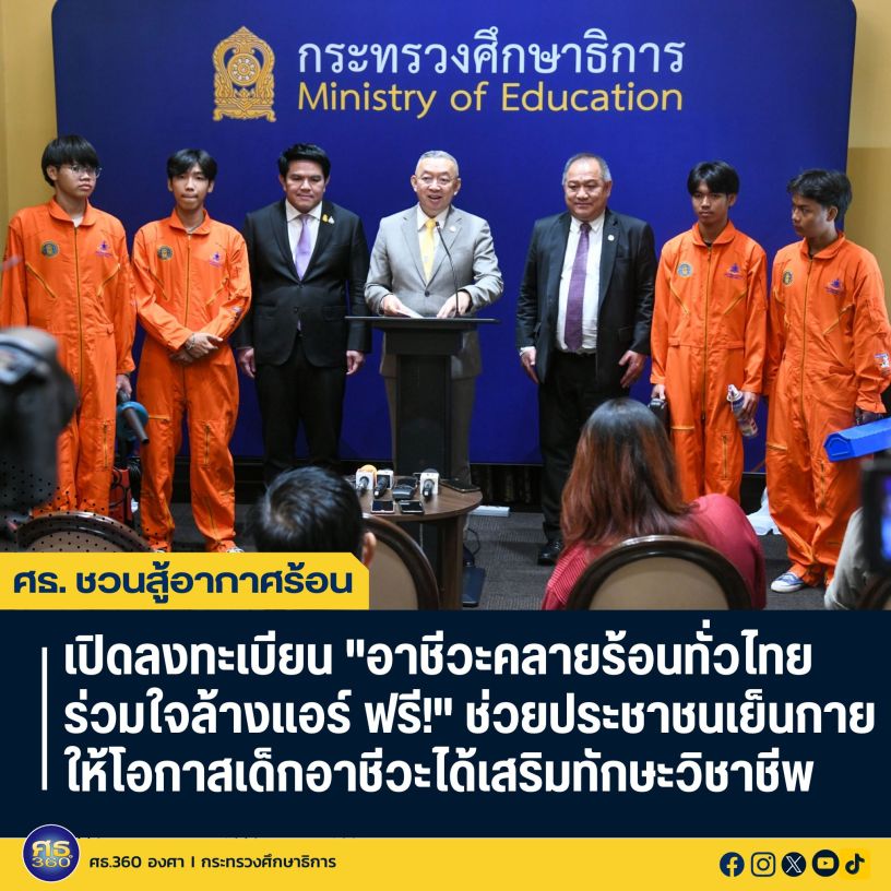รมว.ศธ. กล่าวว่า ศธ.ขอเชิญชวนประชาชนลงทะเบียนใช้บริการล้างแอร์ ในกิจกรรมอาชีวะคลายร้อนทั่วไทย ร่วมใจล้างแอร์ ฟรี! ได้ตั้งแต่วันที่ 3 พฤษภาคม 2567 เป็นต้นไป ทาง http://www.vec.go.th , Facebook : ประชาสัมพันธ์สำนักงานคณะกรรมการการอาชีวศึกษา และ QR Code เพื่อลดการใช้พลังงาน สร้างอากาศสะอาด และได้รับการดูแลรักษาแอร์ในครัวเรือนให้มีสภาพใช้งานได้อย่างเต็มประสิทธิภาพ สร้างคุณภาพอากาศที่ดีภายในบ้าน ลดความเสี่ยงปัญหาสุขภาพโดยเฉพาะโรคที่เกี่ยวกับทางเดินหายใจ ช่วยลดค่าใช้จ่ายและส่งผลให้เกิดการประหยัดพลังงานในภาพรวมของประเทศด้วย เพราะการล้างแอร์ทุก ๆ 6 เดือน จะช่วยลดการใช้พลังงานไฟฟ้า ได้อย่างน้อย 10%