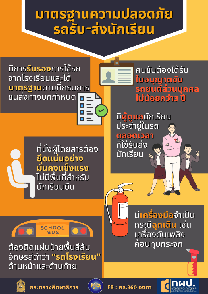 รวมถึงผู้ประกอบการให้บริการรถรับส่งนักเรียน ตรวจสอบสภาพรถและการบริการให้ได้มาตรฐานความปลอดภัย มีการรับรองการใช้รถจากโรงเรียน ได้มาตรฐานตามที่กรมการขนส่งกำหนด ที่นั่งผู้โดยสารมั่นคงแข็งแรง ติดแผ่นป้าย “รถโรงเรียน” ด้านหน้าและด้านท้ายอย่างชัดเจน มีเครื่องมือจำเป็นกรณีฉุกเฉิน ด้านตัวคนขับรถต้องได้รับใบอนุญาตขับรถยนต์ส่วนบุคคลไม่น้อยกว่า 3 ปี และต้องมีผู้ดูแลนักเรียนประจำอยู่ในรถตลอดเวลาที่ใช้รถรับส่งนักเรียน สิ่งเหล่านี้เราผู้ใหญ่ต้องดำเนินการอย่างเข้มข้น เพื่อความปลอดภัยของชีวิตเด็ก ๆ รวมถึงผู้ร่วมทางบนถนนด้วย