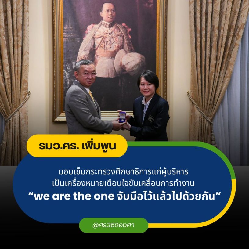 รมว.ศธ. กล่าวว่า เข็มกระทรวงศึกษาธิการที่มอบให้ทุกท่านวันนี้ เป็นเครื่องหมายเตือนใจเพื่อดู เพื่อคิด เพื่อทำ เป็นกำลังใจในการขับเคลื่อนการทำงาน และฝากเน้นมิติการทำงานต้องพยายามบูรณาการกับทุกฝ่าย ใช้ทรัพยากรร่วมกันให้มากที่สุด รวมถึงการใช้งานระบบ AI เข้ามาช่วย เราจะต้องฉลาดกว่า AI เพื่อใช้งานระบบได้อย่างมีประสิทธิภาพ บนหลักการทำงาน ประหยัด เรียบง่าย ลดภาระ ซึ่งเข็มพร้อมเกียรติบัตรของแท้จะมีข้อมูลในระบบของ ศธ. แสดงให้เห็นถึงพลังครอบครัว ศธ. “We are the one จับมือไว้แล้วไปด้วยกัน”