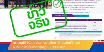 ตรวจสอบแล้ว เป็นข่าวจริง!!! บุคลากรทางการศึกษา ทำประกันชีวิตและอุบัติเหตุฟรี