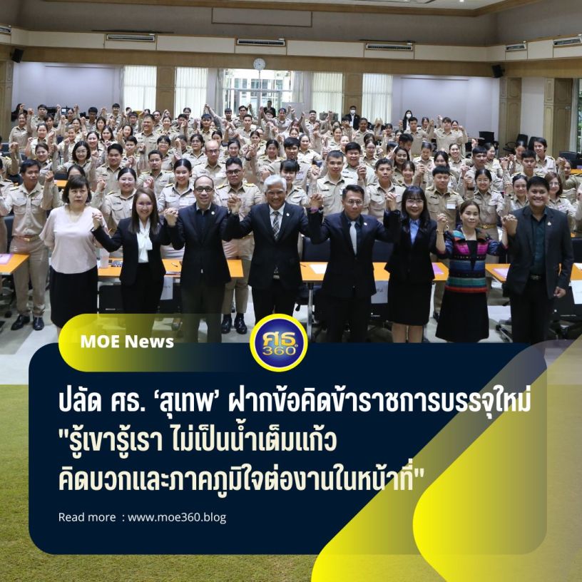 นายสุเทพ แก่งสันเทียะ ปลัด ศธ. กล่าวว่า ข้าราชการบรรจุใหม่ ถือเป็นทรัพยากรมนุษย์ที่มีความสำคัญในการขับเคลื่อนภารกิจต่าง ๆ ขององค์กรให้บรรลุตามเป้าหมายและมีผลสัมฤทธิ์ที่ดีมีประสิทธิภาพ ซึ่งข้าราชการรุ่นใหม่ จะเข้ามาเป็นทั้งพลังกายและพลังสมองที่จะสืบทอดตำแหน่งหน้าที่การปฏิบัติงานของข้าราชการรุ่นเก่า ที่ต้องเกษียณอายุราชการตามวาระและวิถีชีวิตของการรับราชการ ดังนั้น การที่ข้าราชการบรรจุใหม่ทุกคนได้รับการพัฒนาที่ดีตั้งแต่เริ่มแรกและต่อเนื่อง จะส่งผลให้เป็นองค์กรมีความเข้มแข็ง มีการทำงานที่มุ่งผลสัมฤทธิ์อย่างมีประสิทธิภาพและประสิทธิผล