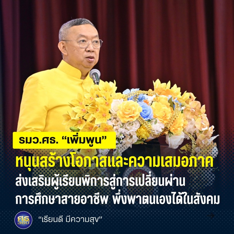 รมว.ศธ. กล่าวว่า กระทรวงศึกษาธิการ (ศธ.) มีความมุ่นมั่น ตั้งใจในการแก้ไขปัญหาความเหลื่อมล้ำทางการศึกษา เพื่อสร้างโอกาสและความเสมอภาคทางการศึกษาให้กับผู้เรียนทุกคน ยกระดับการศึกษาสู่ความเป็นเลิศ และการศึกษาเพื่อความมั่นคงของชีวิต ภายใต้แนวทางการทำงาน “จับมือไว้ แล้วไปด้วยกัน” ตามนโยบาย “เรียนดี มีความสุข” โดยเชื่อมั่นว่าผู้เรียนทุกคนจะมีความสุข ถ้าได้รับโอกาสทางการศึกษาที่เสมอภาคกัน จึงได้กำหนดนโยบายลดภาระนักเรียนและผู้ปกครอง ให้สามารถเรียนได้ทุกที่ ทุกเวลา (Anywhere Anytime) เรียนฟรีมีงานทำ ยึดผู้เรียนเป็นศูนย์กลาง มุ่งสู่สังคมการเรียนรู้ตลอดชีวิตผู้เรียน และประชาชนได้เรียนตามความสนใจและความถนัดของตนเอง โดยเฉพาะผู้พิการที่อยู่ในกลุ่มเปราะบาง จำเป็นต้องได้รับโอกาสในการเข้าถึงทางการศึกษาและการฝึกทักษะวิชาชีพ เพื่อให้กลุ่มคนเหล่านี้สามารถพึ่งพาตนเอง ใช้ชีวิตในสังคม และเกิดความมั่นคงของชีวิตได้ เป็นทรัพยากรมนุษย์ที่มีค่าของสังคม