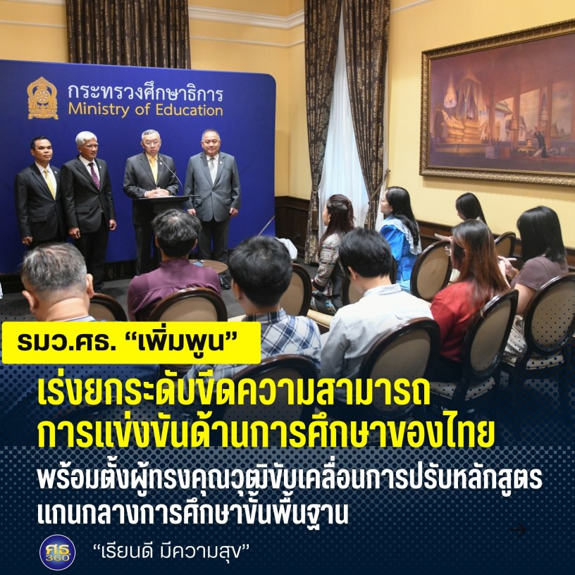 ภายหลังการประชุม รมว.ศธ. พร้อมด้วยนายสุเทพ แก่งสันเทียะ ปลัด ศธ. ว่าที่ร้อยตรี ธนุ วงษ์จินดา เลขาธิการ กพฐ. และนายยศพล เวณุโกเศศ เลขาธิการ กอศ. แถลงข่าว ณ ห้องแถลงข่าว