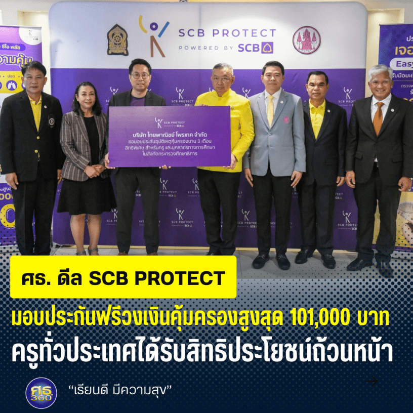 ขอบคุณผู้บริหาร SCB Protect ที่ให้การสนับสนุนเป็นอย่างดี เล็งเห็นความสำคัญของครูและบุคลากรทางการศึกษาทั่วประเทศ มอบประกันอุบัติเหตุและประกันชีวิตฟรี และไม่ใช่เฉพาะครูในสังกัดกระทรวงศึกษาธิการเท่านั้น แต่เราได้ร่วมพิจารณาแล้วว่าไม่ว่าจะอยู่ในสังกัดใดก็ควรได้สิทธิประโยชน์นี้อย่างทั่วถึง รวมไปถึงพนักงานเจ้าหน้าที่ส่งเสริมความประพฤตินักเรียนและนักศึกษา (พสน.) ก็สามารถเข้าถึงสิทธิพิเศษนี้ได้เช่นเดียวกัน ถือเป็นสิ่งดีที่กระตุ้นเตือนให้ตระหนักถึงการลดความเสี่ยงเรื่องการทำประกันชีวิต