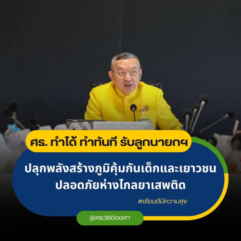 รมว.ศธ. กล่าวอีกว่า เด็กและเยาวชนเป็นกลุ่มที่มีความเสี่ยงต่อการติดยาเสพติดสูง เนื่องจากเป็นวัยแห่งการเรียนรู้แต่ยังขาดวุฒิภาวะทางอารมณ์ รวมทั้งการเผชิญการเปลี่ยนแปลงทั้งทางร่างกายและจิตใจ ศธ. ได้ตระหนักและให้ความสำคัญในการแก้ไขปัญหายาเสพติดอย่างต่อเนื่อง จึงได้วางรากฐานการสร้างภูมิคุ้มกันในสถานศึกษาทุกระดับให้แข็งแกร่ง ผ่านกระบวนการการจัดการเรียนการสอนในสถานศึกษาทุกระดับให้มีความรู้เท่าทันกับปัญหายาเสพติด ควบคู่กับการพัฒนาทักษะชีวิตกิจกรรมทางเลือกเชิงสร้างสรรค์ เพื่อป้องกันไม่ให้นักเรียนนักศึกษาเข้าไปยุ่งเกี่ยวกับยาเสพติดทั้งการเสพและการค้าในทุกกรณี