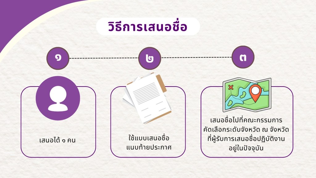 2) ระหว่างการดำเนินการคัดเลือก ควรส่งเสริมสนับสนุนการจัดทำข้อมูล เอกสารและรายละเอียดที่เกี่ยวข้องให้กับครูผู้ได้รับการเสนอชื่อโดยคุณครูท่านอื่น หรือศึกษานิเทศก์