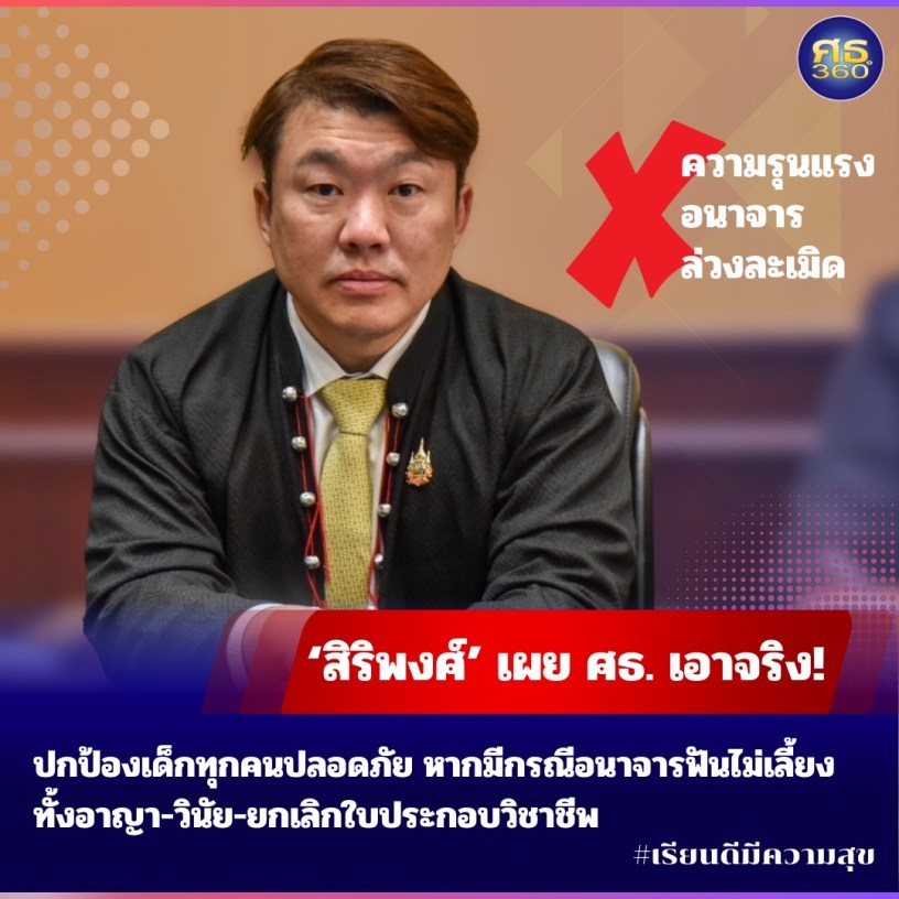“ในฐานะผู้แทนรัฐมนตรีว่าการกระทรวงศึกษาธิการ พล.ต.อ.เพิ่มพูน ชิดชอบ และรัฐมนตรีช่วยว่าการกระทรวงศึกษาธิการ นายสุรศักดิ์ พันธ์เจริญวรกุล ขอให้ความมั่นใจกับผู้ปกครอง ครู นักเรียน และประชาชน ว่า ศธ. ไม่ยอมรับความรุนแรงในทุกรูปแบบ รวมทั้งการกระทำคุกคามอนาจารต่อเด็ก ซึ่งจะมีการลงโทษผู้กระทำผิดตามระเบียบและข้อกฎหมาย ไม่ว่าจะเป็นบุคคลากรทางการศึกษา หรือบุคคลภายนอกโดยไม่ละเว้น พร้อมทั้งยืนยันให้ความช่วยเหลือ เยียวยา ฟื้นฟูเด็กที่ได้รับผลกระทบ คุ้มครองสิทธิของเด็ก และป้องกันไม่ให้เกิดเหตุการณ์ซ้ำรอยเดิม เพื่อให้เด็กทุกคนอยู่ภายใต้สภาพแวดล้อมที่ปลอดภัย อบอุ่น และเอื้อต่อการเรียนรู้” นายสิริพงศ์ กล่าว