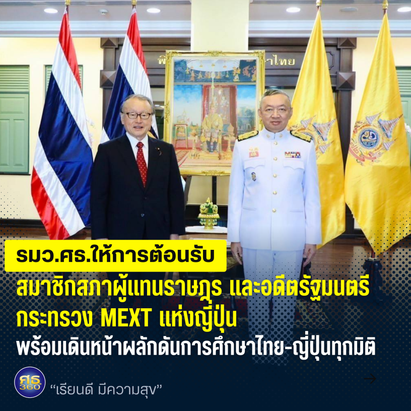18 กรกฎาคม 2567 /พลตำรวจเอก เพิ่มพูน ชิดชอบ รัฐมนตรีว่าการกระทรวงศึกษาธิการ ได้ให้การต้อนรับนายนาคากาวะ มาซาฮารุ (Mr. NAKAGAWA Masaharu) สมาชิกสภาผู้แทนราษฎรญี่ปุ่น และอดีตรัฐมนตรีว่าการกระทรวงศึกษาธิการ วัฒนธรรม กีฬา วิทยาศาสตร์ และเทคโนโลยี (MEXT) ประเทศญี่ปุ่น พร้อมด้วยนายโอทากะ มาซาโตะ (Mr. OTAKA Masato) เอกอัครราชทูตวิสามัญผู้อำนาจเต็มแห่งญี่ปุ่น และได้มอบหมายให้นายพิเชฐ โพธิ์ภักดี รองปลัดกระทรวงศึกษาธิการ เป็นผู้แทนปลัดกระทรวงศึกษาธิการ เข้าร่วมหารือ พร้อมผู้อำนวยการสำนักความสัมพันธ์ต่างประเทศ สำนักงานปลัดกระทรวงศึกษาธิการ
