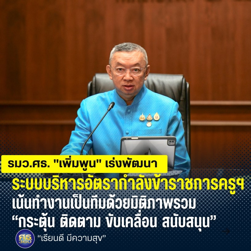 รมว.ศธ. กล่าวว่า การบริหารอัตรากำลังข้าราชการครูและบุคลากรทางการศึกษา สังกัดกระทรวงศึกษาธิการ เพื่อให้หน่วยงานการศึกษาทุกแห่ง มีอัตรากำลังข้าราชการครูและบุคลากรทางการศึกษาที่เหมาะสมในการขับเคลื่อนการจัดการศึกษา ภายหลังจากที่ได้รับการจัดสรรคืนอัตราเกษียณอายุราชการ ซึ่งต้องการให้วันที่ 1 ตุลาคม หลังจากสิ้นสุดปีงบประมาณและมีการคืนอัตราเกษียณ ได้มีการบรรจุแต่งตั้งข้าราชการ บุคลากร พร้อมทำงานทดแทนตำแหน่งว่างทั้งหมด โดยทุกส่วนราชการต้องมีการบูรณาการการบริหารอัตรากำลังข้าราชการครูและบุคลากรทางการศึกษาร่วมกัน