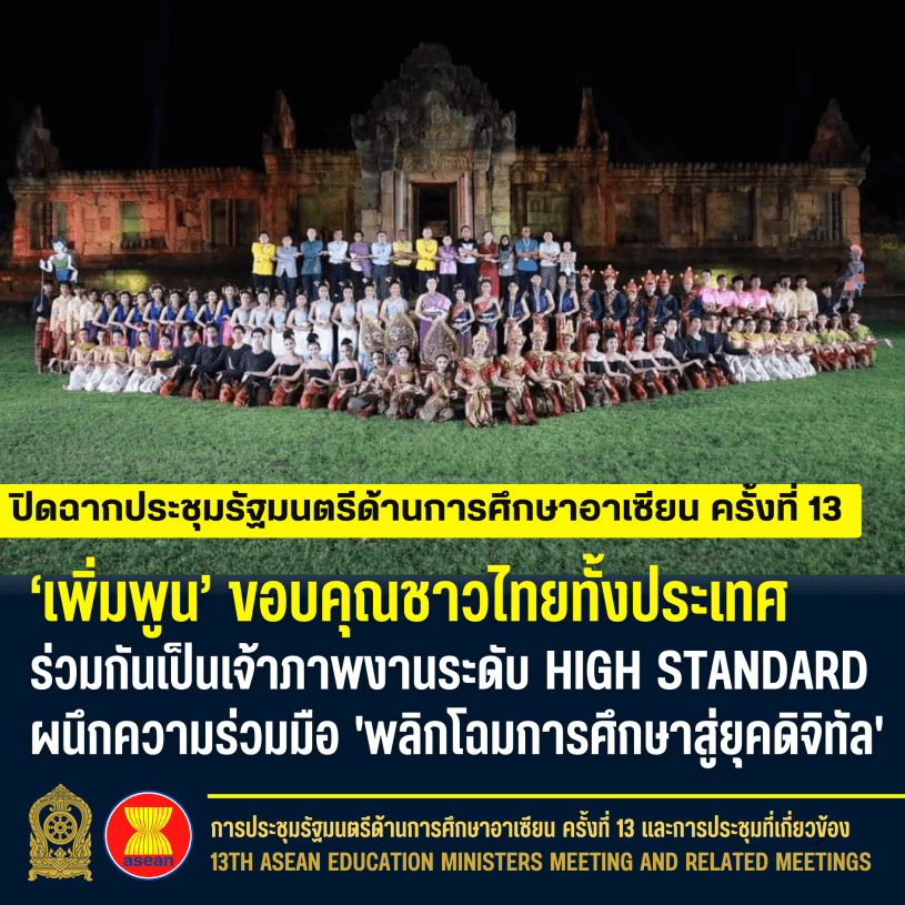 พล.ต.อ.เพิ่มพูน ชิดชอบ กล่าวว่า การประชุมรัฐมนตรีด้านการศึกษาอาเซียน ครั้งที่ 13 และการประชุมที่เกี่ยวข้อง ทั้งในระดับเจ้าหน้าที่อาวุโสและระดับรัฐมนตรีศึกษา ซึ่งจัดขึ้นระหว่างวันที่ 23 – 26 สิงหาคม 2567 ณ จังหวัดบุรีรัมย์ ได้เสร็จสิ้นลงอย่างเป็นทางการ และบรรลุตามวัตถุประสงค์อย่างครบถ้วน