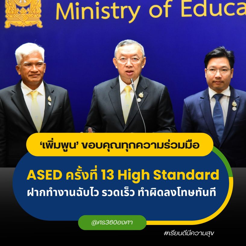 พล.ต.อ.เพิ่มพูน ชิดชอบ รมว.ศธ. กล่าวขอบคุณทุกคนที่มีส่วนเกี่ยวข้องกับการประชุมรัฐมนตรีด้านการศึกษาอาเซียนที่ผ่านมา ไม่ว่าจะเป็นระดับผู้บริหาร ระดับเจ้าหน้าที่ปฏิบัติงาน ส่งผลให้งานสำเร็จไปด้วยดี เชื่อว่าตามที่รองเลขาธิการอาเซียนพูดน่าจะเป็นความจริงว่า พวกเรามีการดำเนินการที่ถือว่าเป็น High Standard แสดงว่าสูงกว่ามาตรฐานสากล ซึ่งเป็นความภาคภูมิใจ รวมทั้งฝากขอบคุณคนที่บ้าน ผู้ใต้บังคับบัญชา ผู้ที่ไปร่วมงาน ส่วนผู้ที่ไม่ได้ไปร่วมงานก็ต้องฝากขอบคุณด้วยเช่นกัน เพราะว่าในขณะที่ผู้มาร่วมงานช่วยกันในการทำงานอยู่นั้น ผู้ที่ไม่ได้มาก็คงต้องรับภาระงานต่าง ๆ ที่จะต้องทำแทน รวมถึงกระทั่งครอบครัวของทุกคนด้วย หลังจากนี้อยากให้มีการติดตามสื่อที่เราผลิตและส่งไป แล้วก็ต้องทำหนังสือขอบคุณไปยังหน่วยงานต่าง ๆ ที่เข้ามาร่วมประชุมหรือส่งผู้แทนเข้ามาร่วมประชุม ตลอดจนส่งข้อมูลต่าง ๆ ที่ทำให้เราจัดงานประชุมนี้ขึ้นมาได้สำเร็จ