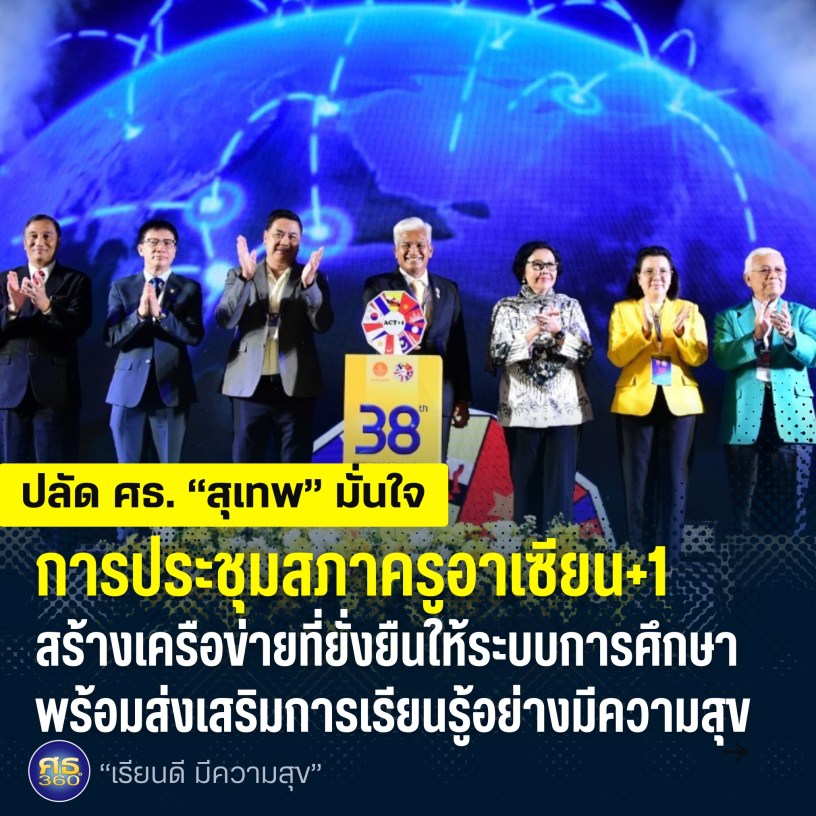 7 กันยายน 2567 / พลตำรวจเอก เพิ่มพูน ชิดชอบ รัฐมนตรีว่าการกระทรวงศึกษาธิการ มอบหมายให้ ดร.สุเทพ แก่งสันเทียะ ปลัดกระทรวงศึกษาธิการ เป็นประธานเปิดการประชุมสภาครูอาเซียน+1 ครั้งที่ 38 The 38th ASEAN Council of Teachers + Korea (ACT+1) Convention ภายใต้หัวข้อ “Promoting Happy Schooling and Sustainability in Education: การส่งเสริมการเรียนรู้ในโรงเรียนอย่างมีความสุขและความยั่งยืนในการศึกษา” จัดขึ้นระหว่างวันที่ 6 – 8 ก.ย. 67 ณ โรงแรมเดอะ เบอร์เคลีย์ ประตูน้ำ กรุงเทพมหานคร