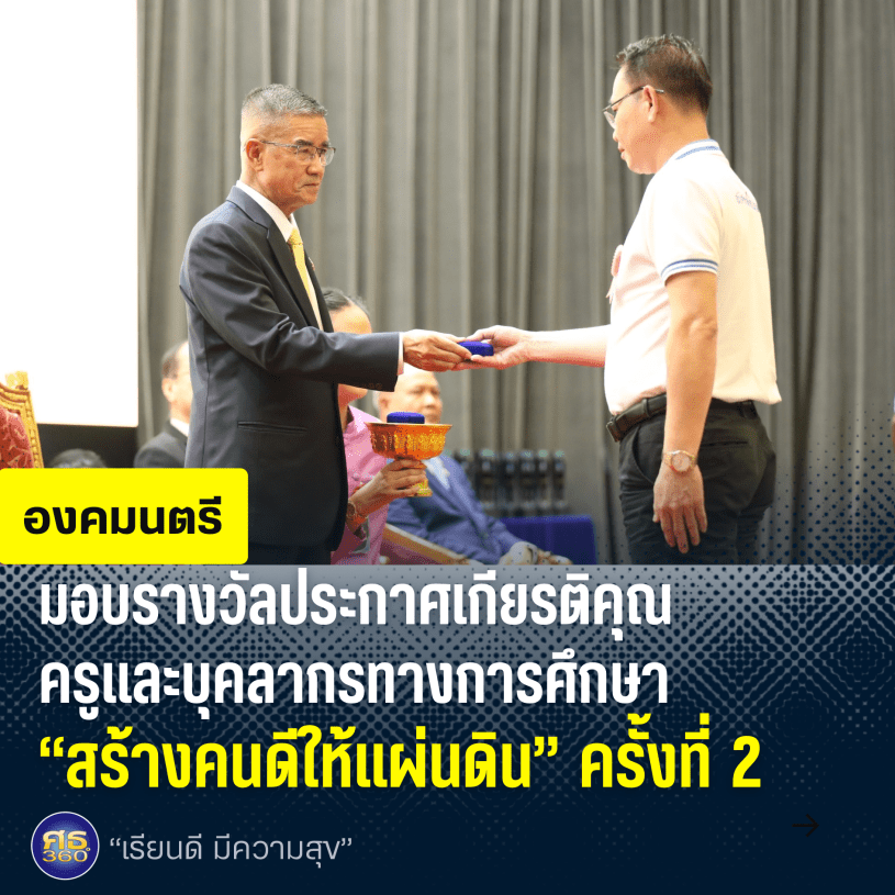 ิ วันนี้ถือเป็นวันที่สำคัญอย่างยิ่ง ไม่เพียงแค่สำหรับท่านที่ได้รับรางวัลครูและบุคลากรทางการศึกษาดีของแผ่นดินเท่านั้น แต่เป็นวันสำคัญยิ่งสำหรับพวกเราทุกคนที่ได้มาเป็นสักขีพยานในความสำเร็จที่ยิ่งใหญ่นี้ การได้รับรางวัลนี้ไม่ได้แค่เป็นเครื่องหมายแห่งความสำเร็จในสิ่งที่ท่านได้ทำ แต่ยังเป็นสัญลักษณ์ของความมุ่งมั่นตั้งใจ และความเชื่อมั่นในคุณค่าของการทำความดี