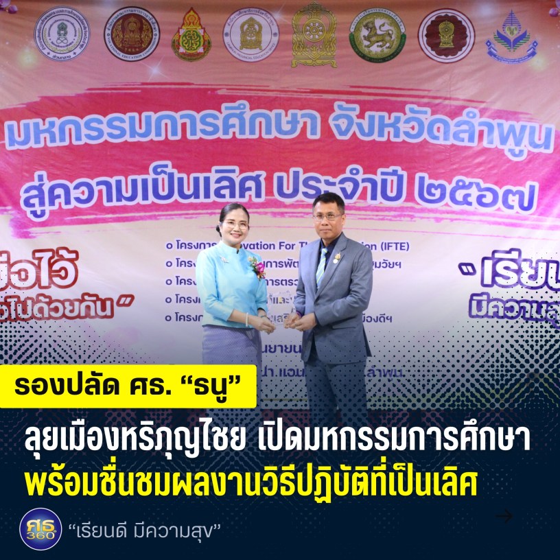 จังหวัดลำพูน – 6 กันยายน 2567 / นายธนู ขวัญเดช รองปลัด ศธ. เป็นประธานเปิดงานมหกรรมการศึกษาจังหวัดลำพูน “เรียนดี มีความสุข จับมือไว้ แล้วไปด้วยกัน” โดยนางรุ่งทิพย์ ทาวดี ศึกษาธิการจังหวัดลำพูน นางสาววิไลวรรณ ยะสินธ์ รองศึกษาธิการจังหวัดลำพูน คณะกรรมการศึกษาธิการจังหวัดลำพูน – คณะอนุกรรมการบริหารราชการเชิงยุทธศาสตร์ – คณะอนุกรรมการเกี่ยวกับการพัฒนาการศึกษาจังหวัดลำพูน ผู้บริหารหน่วยงานทางการศึกษา ผู้บริหารสถานศึกษา ข้าราชการครูและบุคลากรทางการศึกษา ในสังกัดกระทรวงศึกษาธิการ และสถานศึกษาองค์กรปกครองส่วนท้องถิ่น