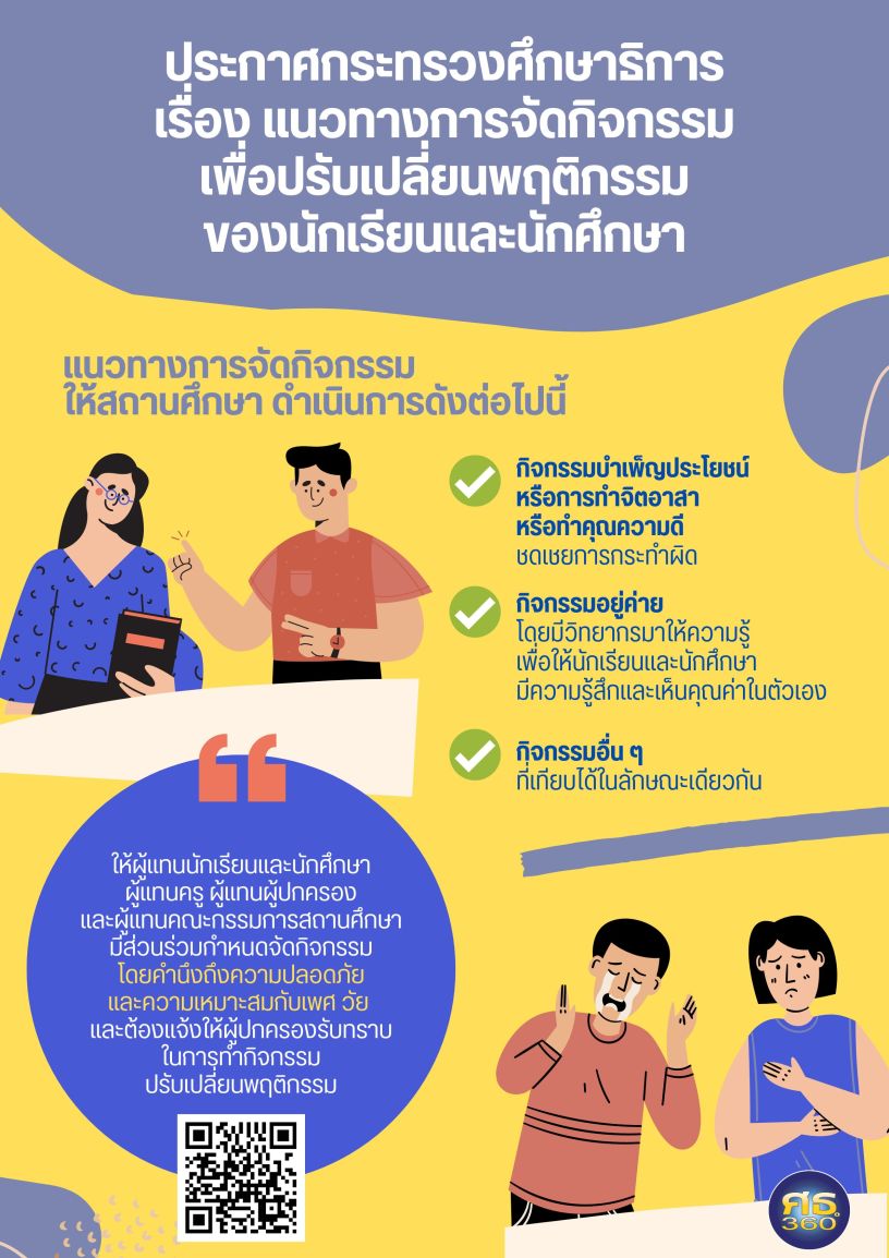 ราชกิจจานุเบกษา (11 กันยายน 2567) เผยแพร่ประกาศกระทรวงศึกษาธิการ เรื่อง แนวทางการจัดกิจกรรมเพื่อปรับเปลี่ยนพฤติกรรมของนักเรียนและนักศึกษา