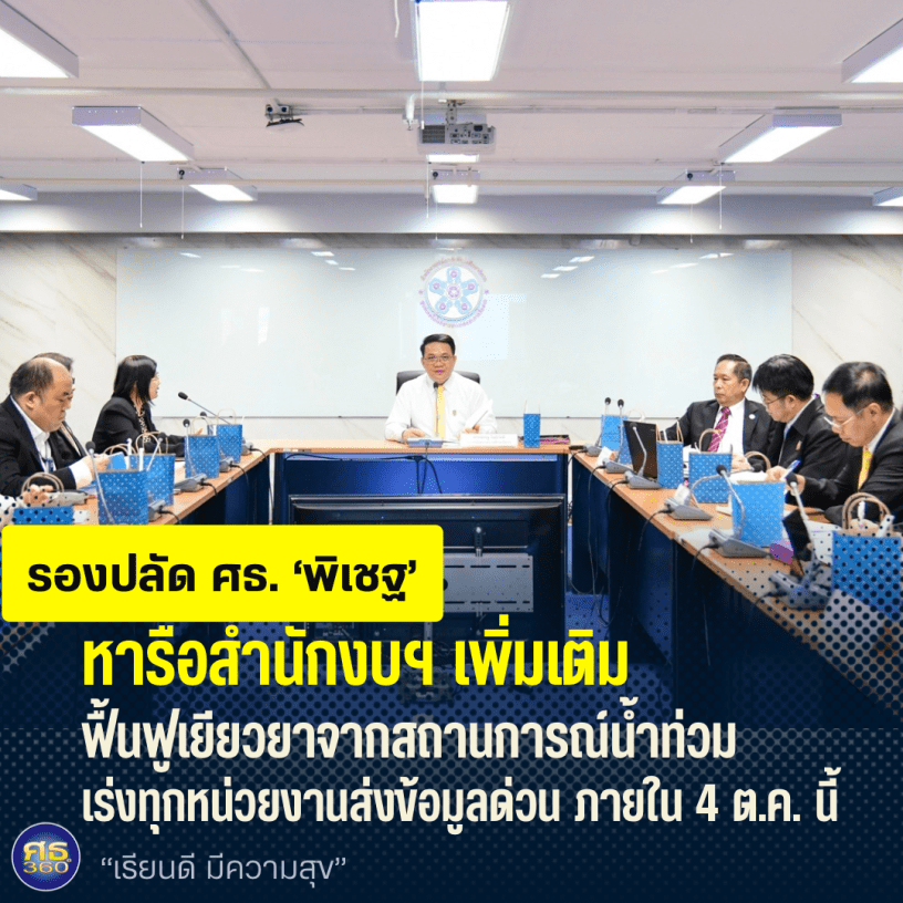 ขอบคุณสำนักงบประมาณที่ให้ข้อแนะนำในวันนี้ และขอความร่วมมือทุกหน่วยงานรวบรวมละเอียดผลกระทบจากสถานการณ์อุทกภัยทั้งหมดภายในวันที่ 4 ตุลาคม 2567 แต่หากครุภัณฑ์สูญหายไปกับสายน้ำเพราะเคลื่อนย้ายไม่ทันให้แนบเลขครุภัณฑ์จากเล่มทะเบียนเป็นหลักฐาน เพื่อส่งรายละเอียดเข้า ครม.ให้ทันวันที่ 8 ตุลาคม 2567 นี้ โดยให้รวบรวมข้อมูลมายัง สนย.นำส่งสำนักงบประมาณพิจารณาตามหลักเกณฑ์และจัดสรรตามคำขอ สามารถสำรวจความเสียหายได้เลยโดยไม่จำเป็นต้องรอให้สิ้นสุดสถานการณ์อุทกภัย เพื่อนำนโยบายรัฐบาลขับเคลื่อนสู่ผู้เรียน ครู และการศึกษาต่อไป