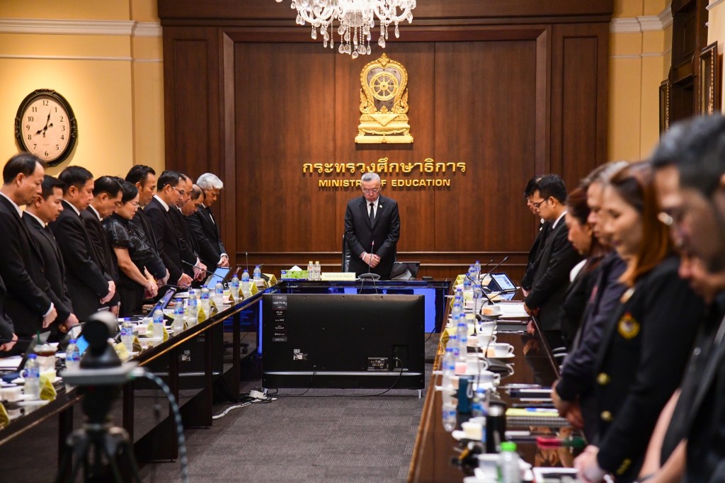 โดยก่อนเริ่มการประชุมฯ คณะผู้บริหารกระทรวงศึกษาธิการได้ยืนสงบนิ่ง 1 นาที เพื่อไว้อาลัยและแสดงความเสียใจต่อเหตุการณ์ไฟไหม้รถบัสนักเรียนจากอุทัยธานี ทำให้มีผู้เสียชีวิตจำนวนมาก
