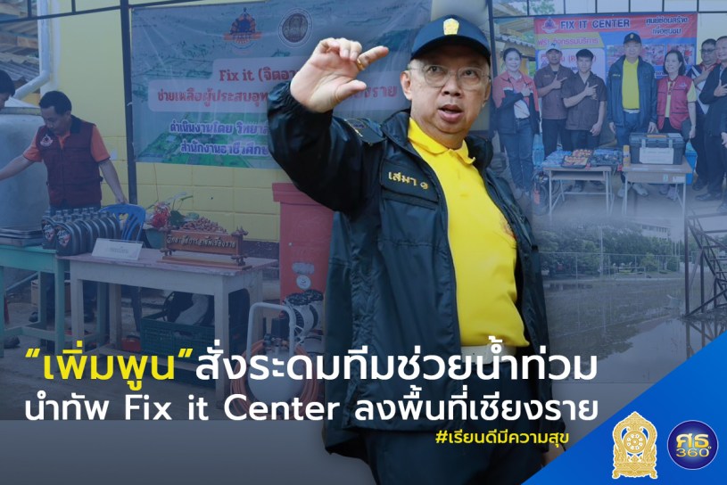 ศธ.จัดหน่วยจิตอาสา Fix it Center จากสังกัดสำนักงานคณะกรรมการการอาชีวศึกษา (สอศ.) ในพื้นที่ภาคเหนือและภาคตะวันออกเฉียงเหนือ รวม 70 ทีม ซึ่งมีวิทยาลัยในสังกัดหลายแห่ง​ อาสาระดมกำลังจัดทำอาหารกล่องแจกให้แก่ผู้ประสบภัย ช่วยขนย้ายสิ่งของหลังน้ำลด ช่วยทำความสะอาดบ้านเรือน สถานศึกษา ซ่อมแซมอุปกรณ์เครื่องใช้ไฟฟ้า มอเตอร์ไซค์ รถยนต์ที่จมน้ำของประชาชน รวมทั้ง​ได้รับความร่วมมือจากอาจารย์และนักศึกษาวิทยาลัยเกษตรและเทคโนโลยีนำรถแทรกเตอร์ขุดดินและเครื่องมือขนาดเล็กเข้าไปช่วยเหลือบริการประชาชนผู้ประสบภัยที่จังหวัดเชียงรายและพื้นที่อื่นแล้วกว่าหมื่นราย