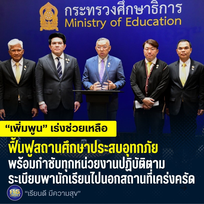 รมว.ศธ. กล่าวว่า เมื่อเร็ว ๆ นี้ ได้ลงพื้นที่จังหวัดเชียงราย ประสานความร่วมมือภาคีเครือข่ายในพื้นที่ช่วยเหลือฟื้นฟูผู้ประสบอุทกภัย พร้อมได้รับทราบข้อมูลนักเรียนครูและบุคลากรทางการศึกษาที่ประสบอุทกภัยและการเยียวยา พบว่ามีผู้ประสบภัยที่เป็นบุคลากรกระทรวงศึกษาธิการ ในพื้นที่ 36 จังหวัด จำนวนกว่า 2 หมื่นคน โดย สพฐ. ได้มีมาตรการเยียวยาในระยะสั้น ในการช่วยเหลือเยียวยา (ถุงยังชีพ) จากกองทุนรวมน้ำใจช่วยเหลือผู้ประสบภัย สพฐ. และสถานศึกษาที่ได้รับผลกระทบอุทกภัย สำหรับมาตรการเยียวยาในระยะยาวได้ดำเนินการจัดสรรงบประมาณในการซ่อมสุขาโรงเรียนที่ได้รับผลกระทบ งบประมาณในการล้าง ซ่อมแซมอาคารสถานที่ และ งบประมาณในการซื้อหนังสือ อุปกรณ์การเรียนและค่าเครื่องแบบ