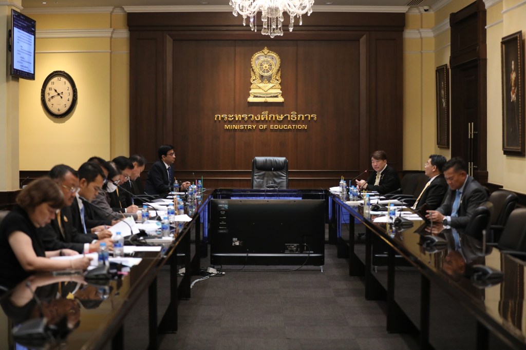 11 ตุลาคม 2567 – นายสิริพงศ์ อังคสกุลเกียรติ คณะที่ปรึกษารัฐมนตรีว่าการกระทรวงศึกษาธิการ เป็นประธานการประชุมกำหนดมาตรการคุ้มครองความปลอดภัยการจัดกิจกรรมของสถานศึกษา โดยรศ.นพ.สุริยเดว ทรีปาตี ผู้อำนวยการศูนย์คุณธรรม นายวิทยา จันทน์เสนะ ผู้อำนวยการกองบูรณาการความปลอดภัยทางถนน นายวรัท พฤกษาทวีกุล รองปลัดกระทรวงศึกษาธิการ นายมณฑล ภาคสุวรรณ์ เลขาธิการคณะกรรมการส่งเสริมกาาศึกษาเอกชน คณะผู้บริหาร และผู้แทนจากหน่วยงานที่เกี่ยวข้องเข้าร่วม ณ ห้องประชุมราชวัลลภ และผ่านระบบ ZOOM