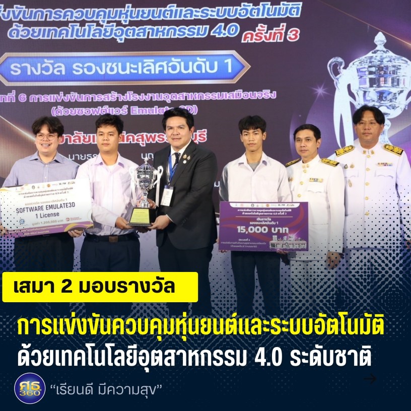เมื่อวันที่ 18 ตุลาคม 2567 / นายสุรศักดิ์ พันธ์เจริญวรกุล รัฐมนตรีช่วยว่าการกระทรวงศึกษาธิการ มอบรางวัลรองชนะเลิศอันดับที่ 1 ให้แก่ทีมผู้ชนะการแข่งขันควบคุมหุ่นยนต์และระบบอัตโนมัติด้วยเทคโนโลยีอุตสาหกรรม 4.0 ระดับชาติ ครั้งที่ 3 ประจำปีการศึกษา 2567 และมอบโล่ประกาศเกียรติคุณให้แก่สถานศึกษาและหน่วยงานที่สนับสนุนการแข่งขันดังกล่าว ในงานนิทรรศการสื่อการศึกษาและการประชุมนานาชาติ didacta asia and didacta asia congress 2024 ณ ฮอลล์ 101 ศูนย์นิทรรศการและการประชุมไบเทคบางนา กรุงเทพมหานคร