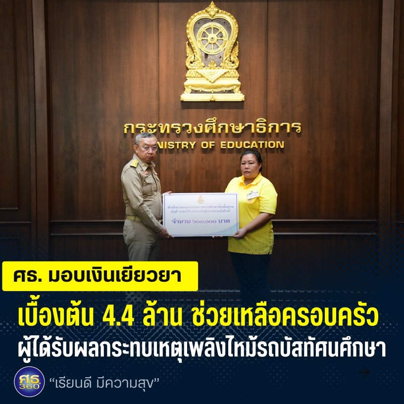 ซึ่งนอกจากการมอบเงินช่วยเหลือเยียวยาผู้เสียชีวิตและผู้ประสบเหตุแล้ว ขอให้ทางโรงเรียนเขตพื้นที่การศึกษา ผู้อำนวยการโรงเรียน และผู้มีส่วนเกี่ยวข้องทุกท่าน ร่วมกันเยียวยาจิตใจให้กับน้อง ๆ นักเรียนและคุณครู ถึงแม้ว่าจะไม่ใช่ผู้ประสบเหตุทางร่างกายโดยตรง แต่ก็ถือว่าได้รับความบาดเจ็บทางจิตใจ ซึ่งก็ต้องมีการเยียวยาฟื้นฟูสภาพจิตใจไปพร้อม ๆ กัน ขอให้มั่นใจว่ากระทรวงศึกษาธิการจะไม่ทิ้งใครไว้ข้างหลัง สำหรับนักเรียนที่บาดเจ็บ รมว.ศธ.ได้รับรายงานจากแพทย์เจ้าของไข้ในทุกวันซึ่งมีอาการดีขึ้นตามลำดับ