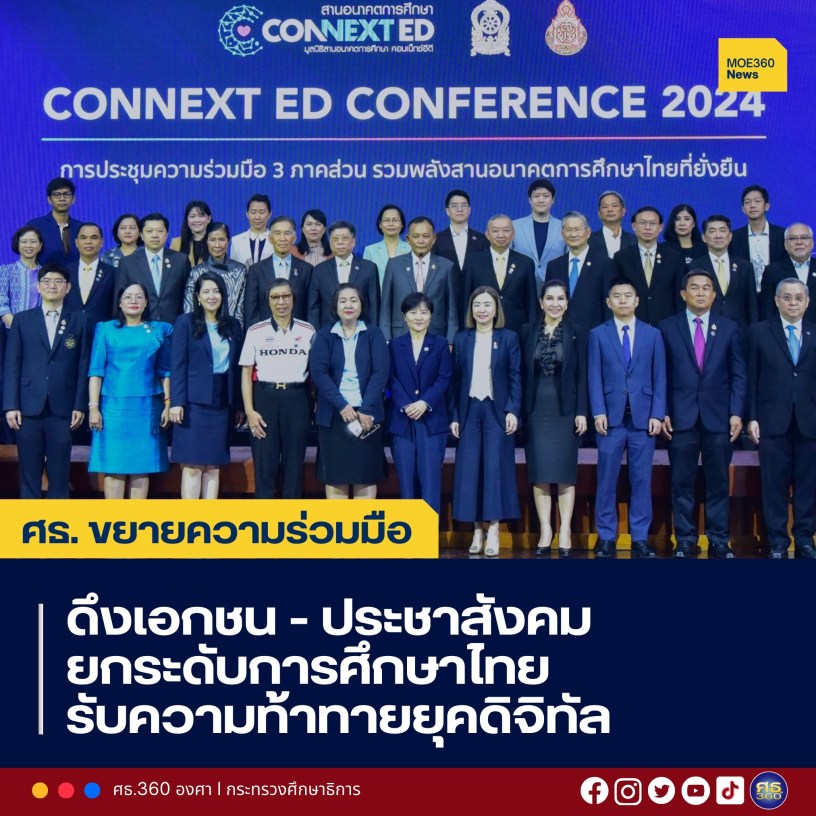 กระทรวงศึกษาธิการ – 14 พฤศจิกายน 2567 / พลตำรวจเอก เพิ่มพูน ชิดชอบ รัฐมนตรีว่าการกระทรวงศึกษาธิการ ร่วมการประชุมความร่วมมือ 3 ภาคส่วน รวมพลังสานอนาคตการศึกษาไทยที่ยั่งยืน CONNEXT ED CONFERENCE 2024 พร้อมด้วยนายศุภชัย เจียรวนนท์ ประธานกรรมการมูลนิธิสานอนาคตการศึกษา คอนเน็กซ์อีดี ผู้ทรงคุณวุฒิจากภาครัฐ ภาคเอกชน ภาคประชาสังคม โดยมีพลเอก ดาว์พงษ์ รัตนสุวรรณ องคมนตรี ในฐานะประธานที่ปรึกษากิตติมศักดิ์ เป็นประธานการประชุมฯ ณ หอประชุมคุรุสภา