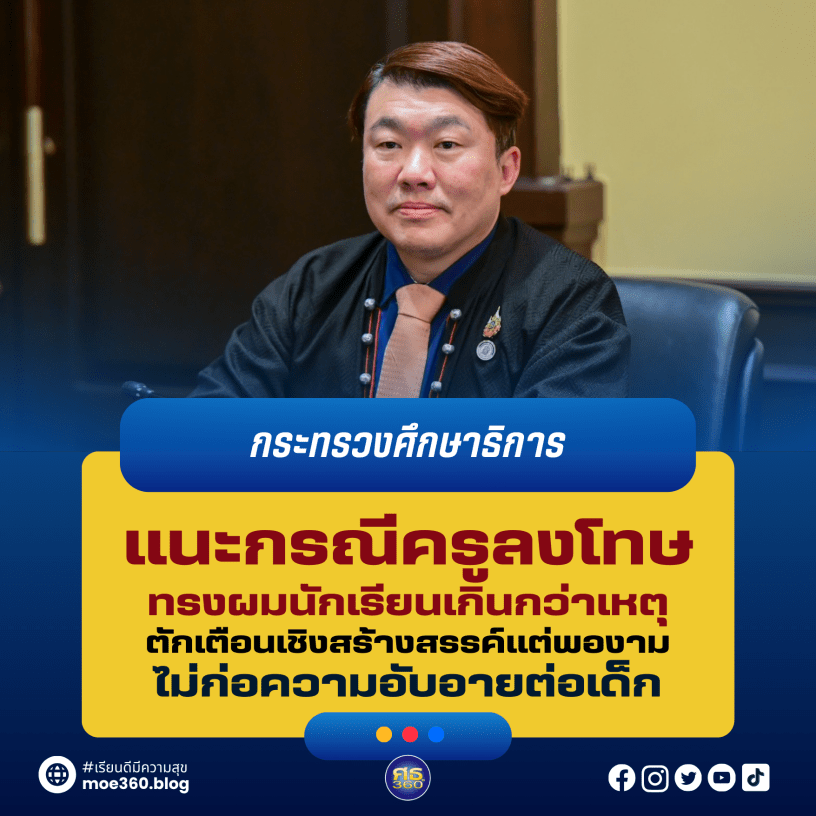 สุดท้ายนี้กระทรวงศึกษาธิการขอย้ำว่าการดำเนินการกับนักเรียนที่ไม่ปฏิบัติตามระเบียบทรงผม ควรมีความห่วงใยและเข้าใจเหตุผลนักเรียน รวมถึงเป็นไปตามแนวทางการลงโทษของกระทรวงศึกษาธิการ ที่มี 4 สถานเท่านั้น คือ ว่ากล่าวตักเตือน ทําทัณฑ์บน ตัดคะแนนความประพฤติ และทํากิจกรรมเพื่อให้ปรับเปลี่ยนพฤติกรรม เพราะผลของการส่งเสริมสภาพแวดล้อมการเรียนรู้ที่น่าจดจำในสถานศึกษาจะทำให้เด็กของเรา “เรียนดี มีความสุข” สนองนโยบายของ พล.ต.อ.เพิ่มพูน ชิดชอบ ที่วางเป็นกรอบแนวทางเพื่อให้การศึกษามุ่งไปสู่การพัฒนาทักษะและความคิดสร้างสรรค์ และให้ผู้เรียนของเราเติบโตในรูปแบบที่เหมาะสมและมีคุณค่าต่อสังคม