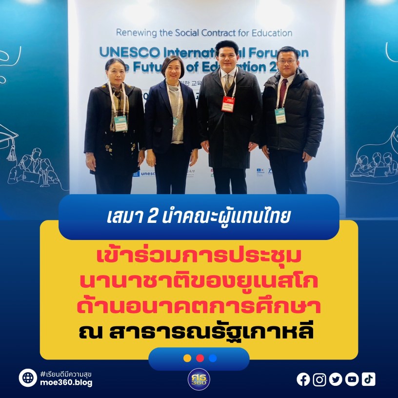 นายสุรศักดิ์ พันธ์เจริญวรกุล รัฐมนตรีช่วยว่าการกระทรวงศึกษาธิการ นำคณะผู้แทนไทยเข้าร่วมการประชุมนานาชาติของยูเนสโกด้านอนาคตการศึกษา (UNESCO International Forum on the Future of Education 2024) ซึ่งจัดขึ้นในระหว่างวันที่ 2-4 ธันวาคม 2567 ณ เมืองซูวอน สาธารณรัฐเกาหลี โดยได้รับความร่วมมือจากกระทรวงศึกษาธิการแห่งสาธารณรัฐเกาหลี สำนักงานการศึกษาจังหวัดคย็องกีโด (สาธารณรัฐเกาหลี) และคณะกรรมการแห่งชาติว่าด้วยการศึกษา วิทยาศาสตร์ และวัฒนธรรมแห่งสหประชาชาติของสาธารณรัฐเกาหลี (Korean National Commission for UNESCO)
