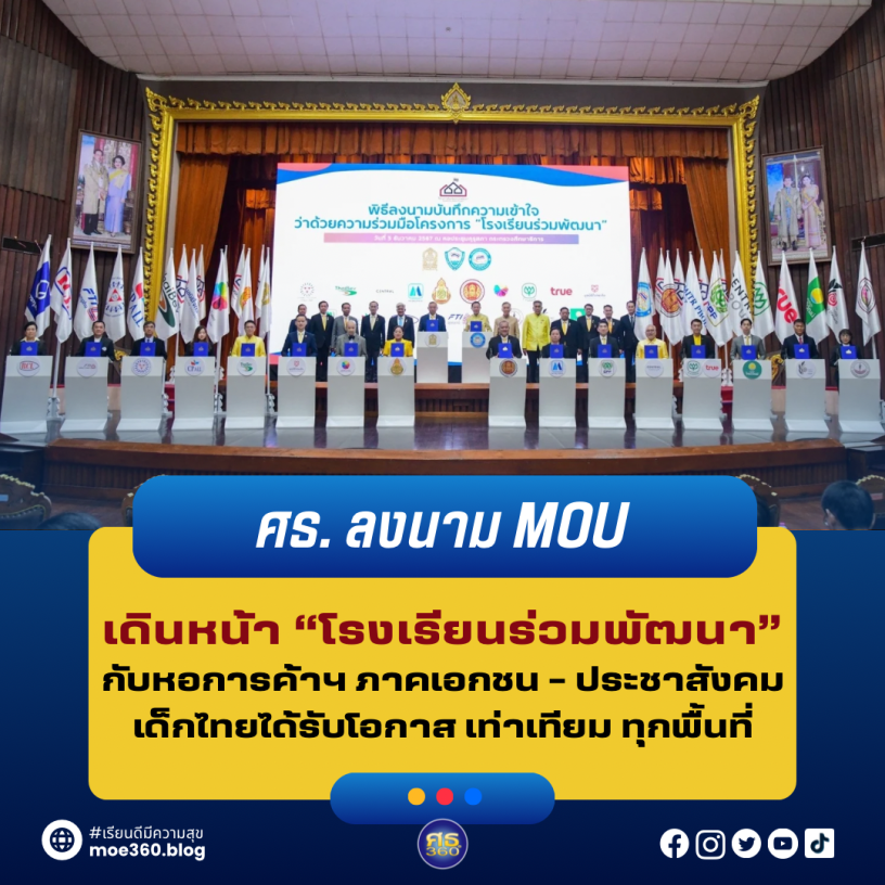 5 ธันวาคม 2567 – พลตำรวจเอก เพิ่มพูน ชิดชอบ รัฐมนตรีว่าการกระทรวงศึกษาธิการ เป็นประธานในพิธีลงนามบันทึกความเข้าใจว่าด้วยความร่วมมือ (MOU) “โรงเรียนร่วมพัฒนา” (Partnership School Project) ร่วมกับนายสนั่น อังอุบลกุล ประธานกรรมการหอการค้าไทยและสภาหอการค้าแห่งประเทศไทย โดยมีนายสิริพงศ์ อังคสกุลเกียรติ ผู้ช่วยรัฐมนตรีประจำ ศธ. นายสุเทพ แก่งสันเทียะ ปลัด ศธ. นายยศพล เวณุโกเศศ เลขาธิการ กอศ. รวมถึงผู้บริหารของ ศธ. ผู้แทนจากภาคเอกชนและภาคประชาสังคม ร่วมพิธีฯ ณ หอประชุมคุรุสภา กระทรวงศึกษาธิการ